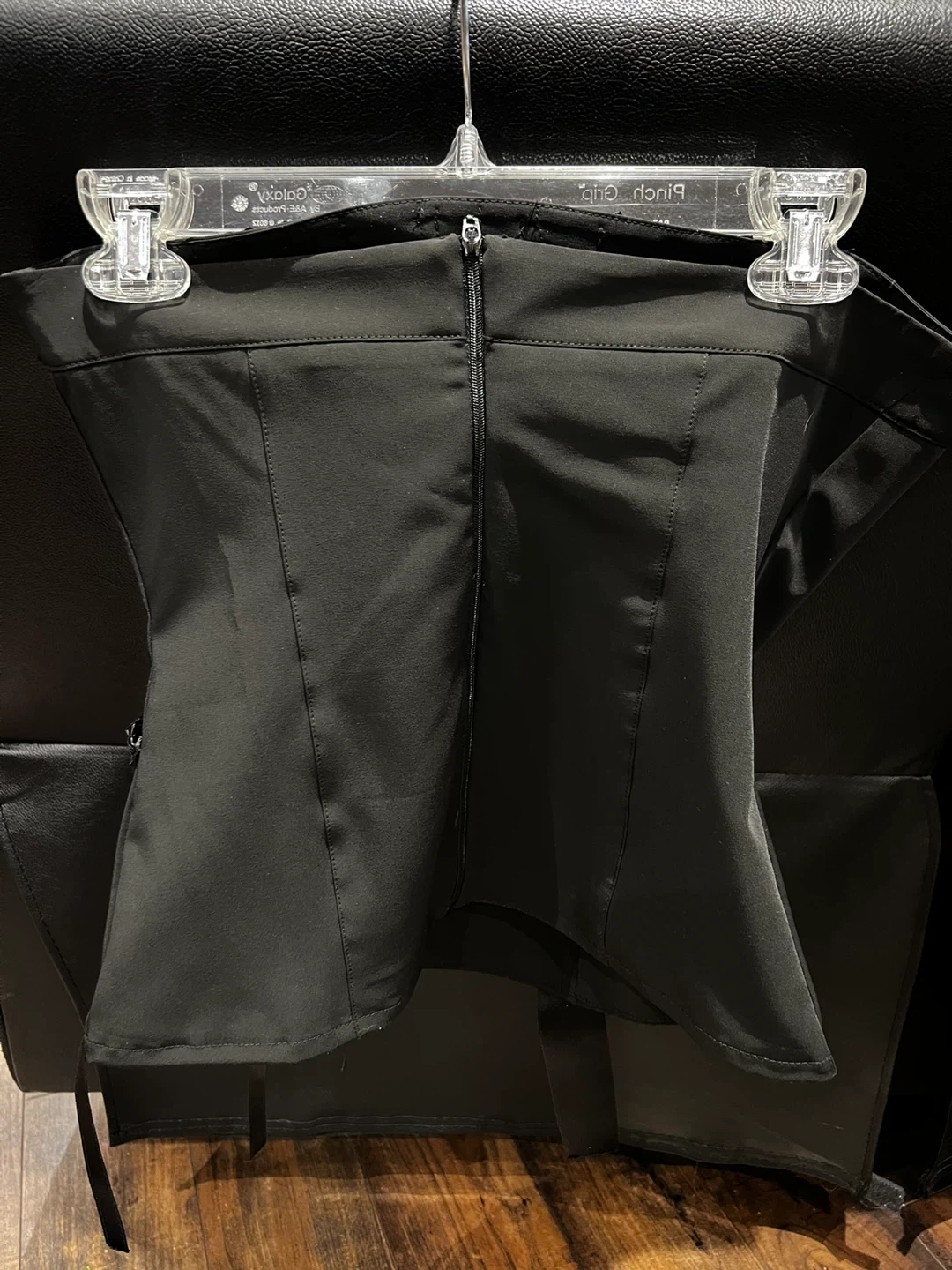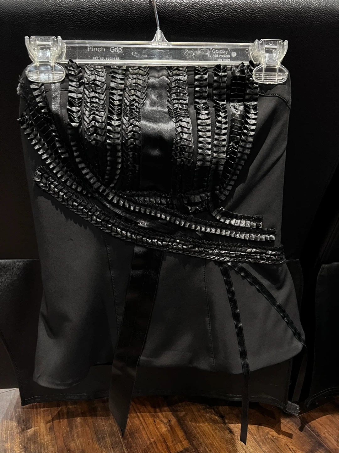 This black Rinascimento corset top is made in Italy. It features a unique ruffled design across the bodice and a zip closure at the back. Size is medium.