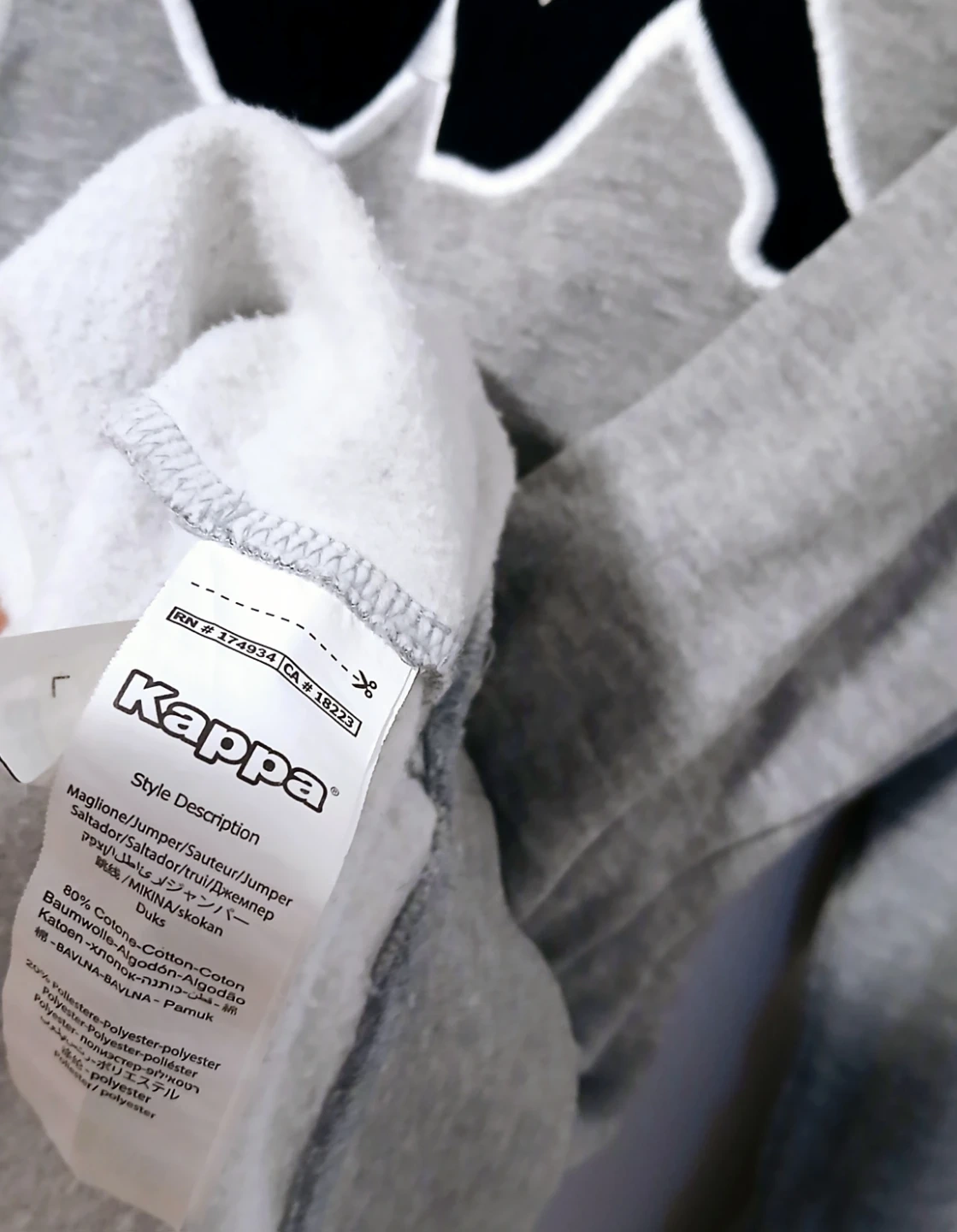 A grey Kappa men's crewneck sweatshirt. 80% cotton. Size XXL. Available for pick up in Meadowvale area, closest intersection Brittania and Glen Erin