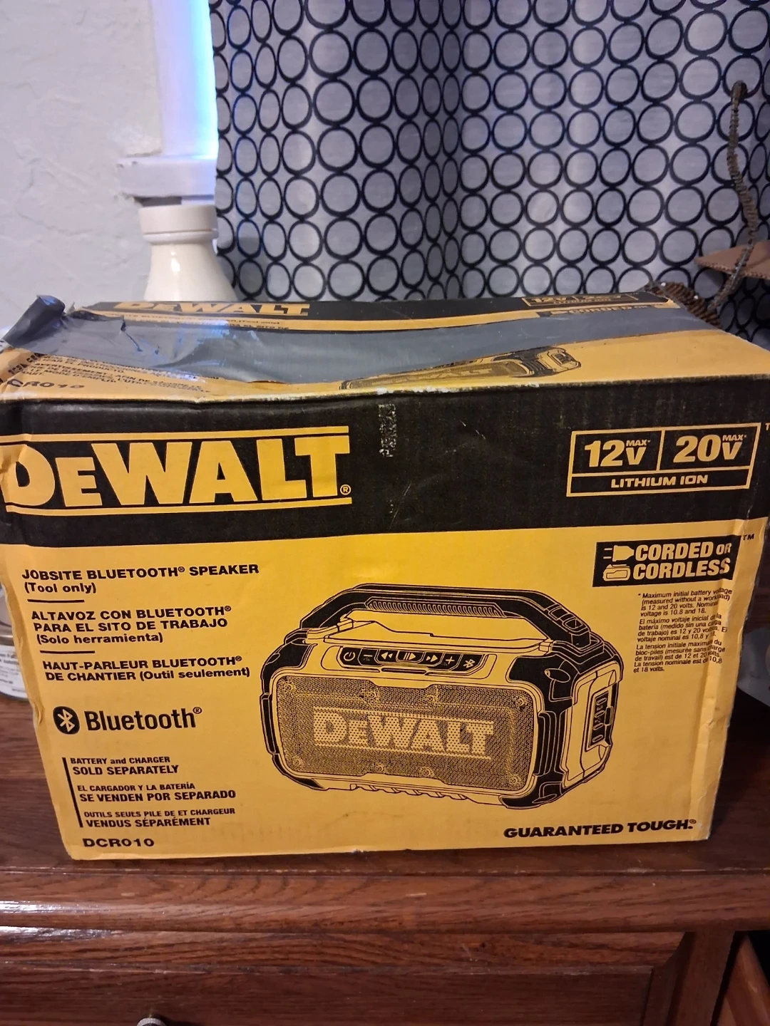 This is a DEWALT DCR010 Jobsite Bluetooth speaker. It's designed for corded or cordless use. Battery and charger are sold separately.