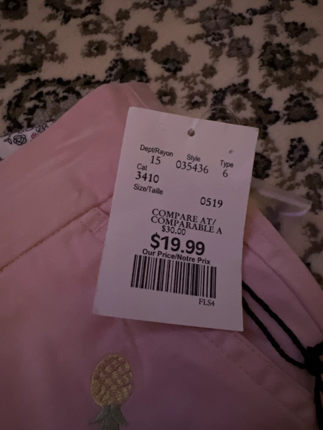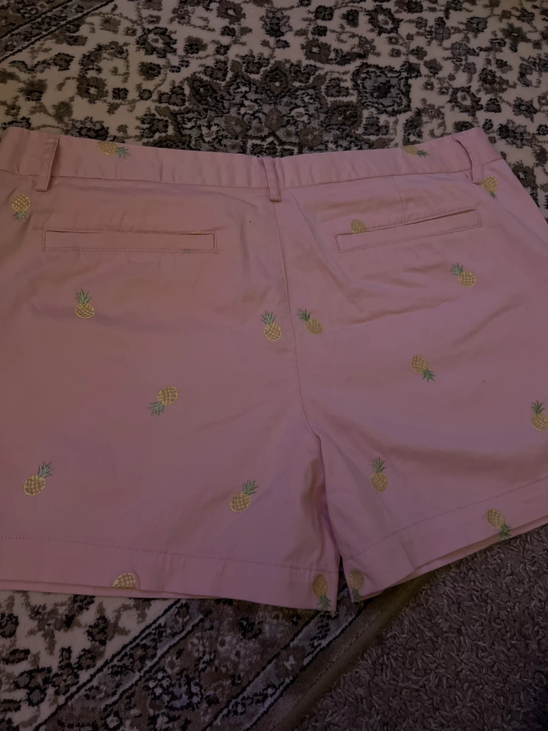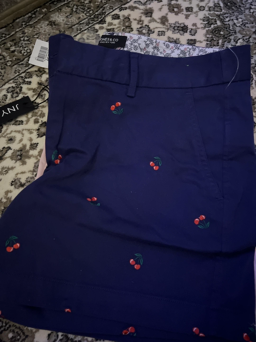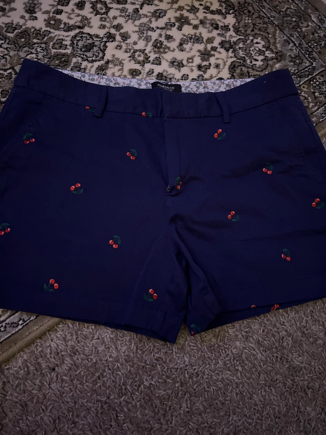 Here are some cute shorts from Jones New York! One pair is pink with little pineapples and the other pair is navy with little cherries. They are both a size 6.