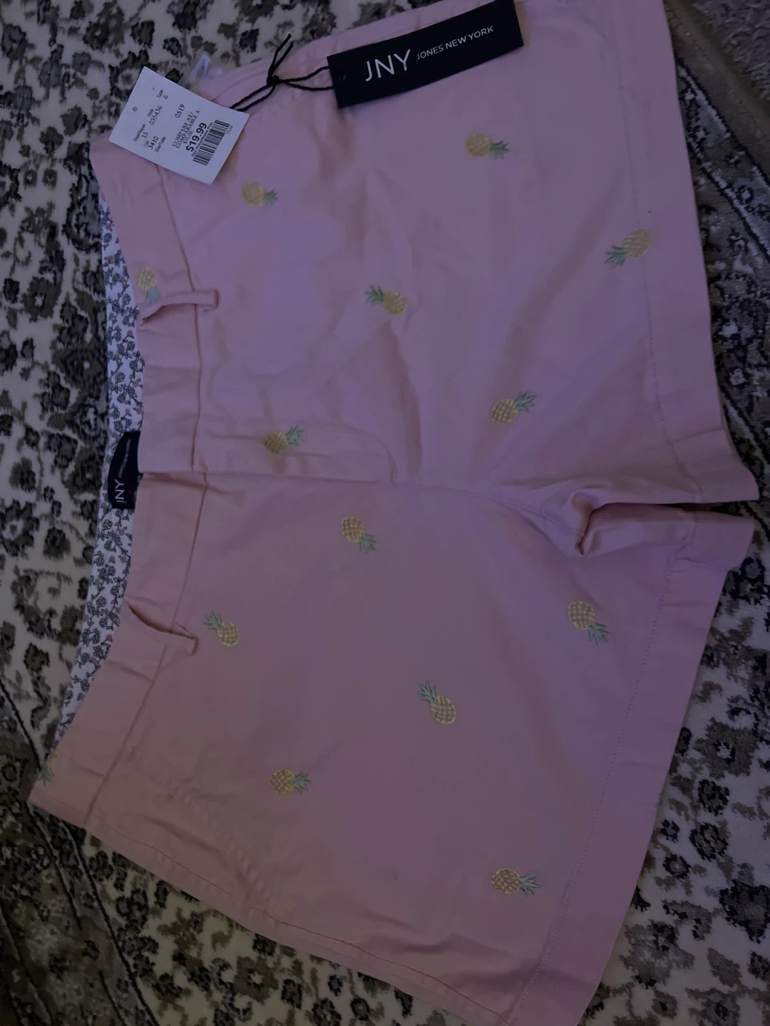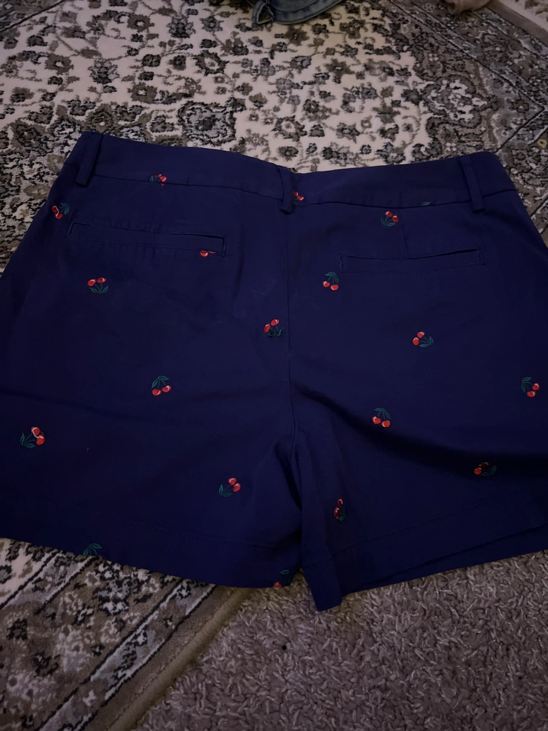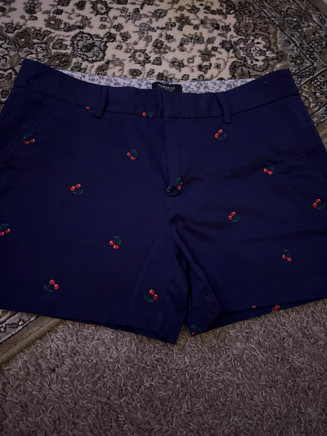 Here are some cute shorts from Jones New York! One pair is pink with little pineapples and the other pair is navy with little cherries. They are both a size 6.
