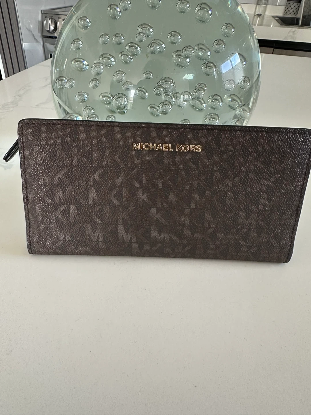 I'm selling a Michael Kors wallet in great condition! It features the classic MK logo pattern and has plenty of space for cards and cash. It's a stylish and practical accessory for everyday use