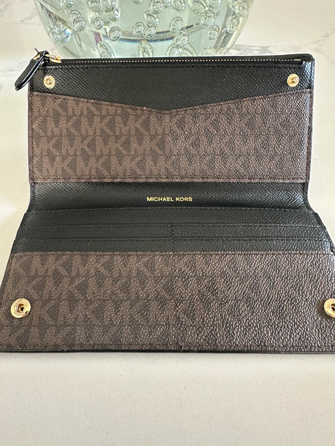 I'm selling a Michael Kors wallet in great condition! It features the classic MK logo pattern and has plenty of space for cards and cash. It's a stylish and practical accessory for everyday use