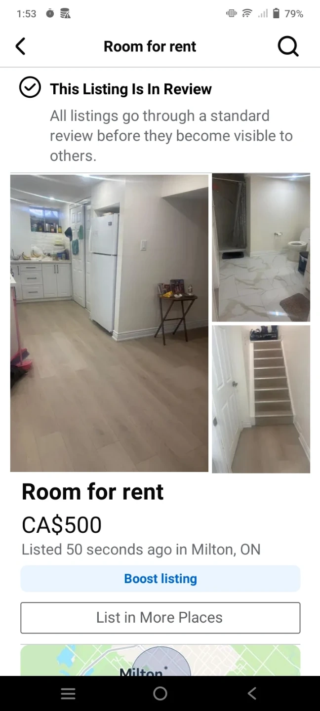 Buy & SellRoom for rentRoom for rent$457Looking another girl to share a room in Milton WHERE TO MEETMiltonView MapSELLERManpreet KaurMilton Mall100 reviews2 chats·0 favorites·220 viewsSEND CHAT TO SELLERHi Manpreet Kaur! I’m interested in your listing.Hi Manpreet Kaur! I’m interested in your listing.Get the Karrot app to chatSign In to chat
