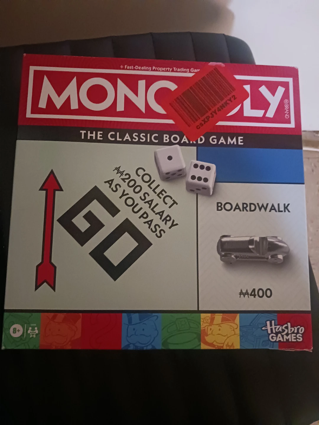 This is the classic Monopoly board game. It's a fun game for family and friends. Comes with dice and game pieces. Recommended for ages 8 and up.