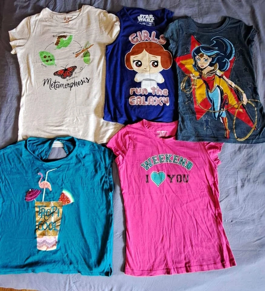 Great condition girl's tops. Sizes range from 10 to 16, though some size 10 and 12 tops fit like a 14 or 16. All are clean, except for the white star top in the first picture which has a couple of spots. No rips, and most have only been worn once or twice. I also have dresses and pants in similar sizes. $5 each, or make an offer for the lot. Pick up in Welland.