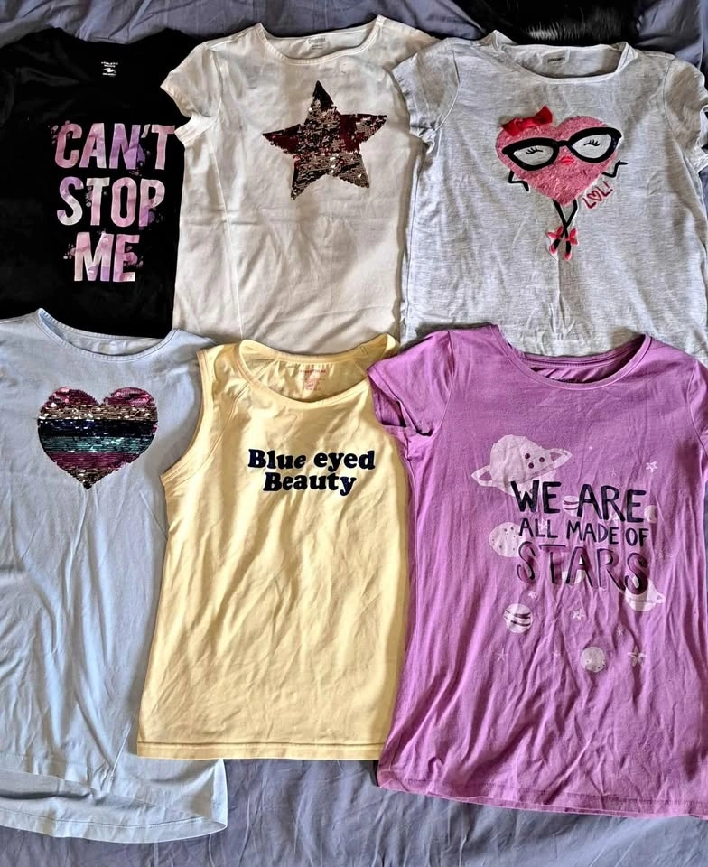 Great condition girl's tops. Sizes range from 10 to 16, though some size 10 and 12 tops fit like a 14 or 16. All are clean, except for the white star top in the first picture which has a couple of spots. No rips, and most have only been worn once or twice. I also have dresses and pants in similar sizes. $5 each, or make an offer for the lot. Pick up in Welland.