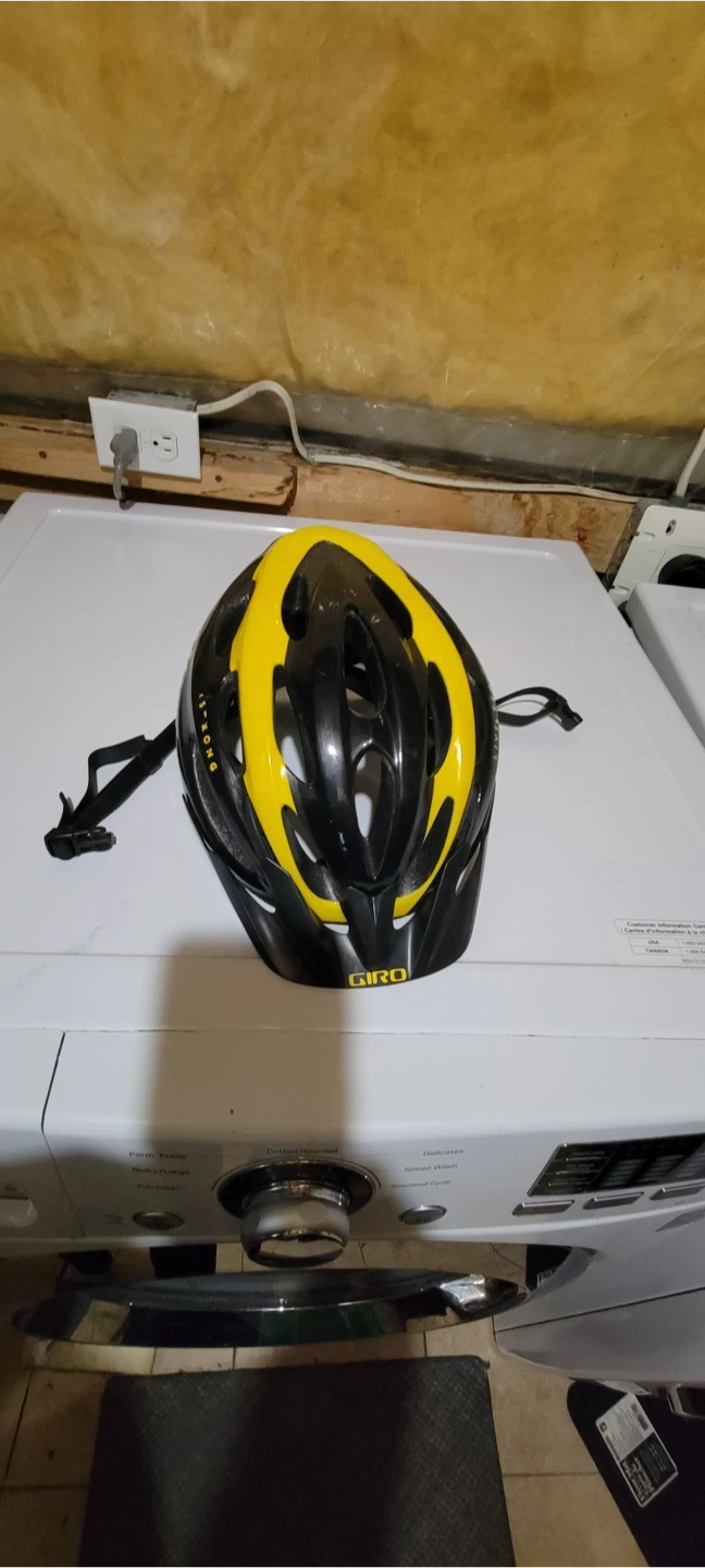 Giro bike helmet in black and yellow. It has multiple vents for airflow. Adjustable straps for a secure fit. Great for cycling safety! with 2 Bags and helmet