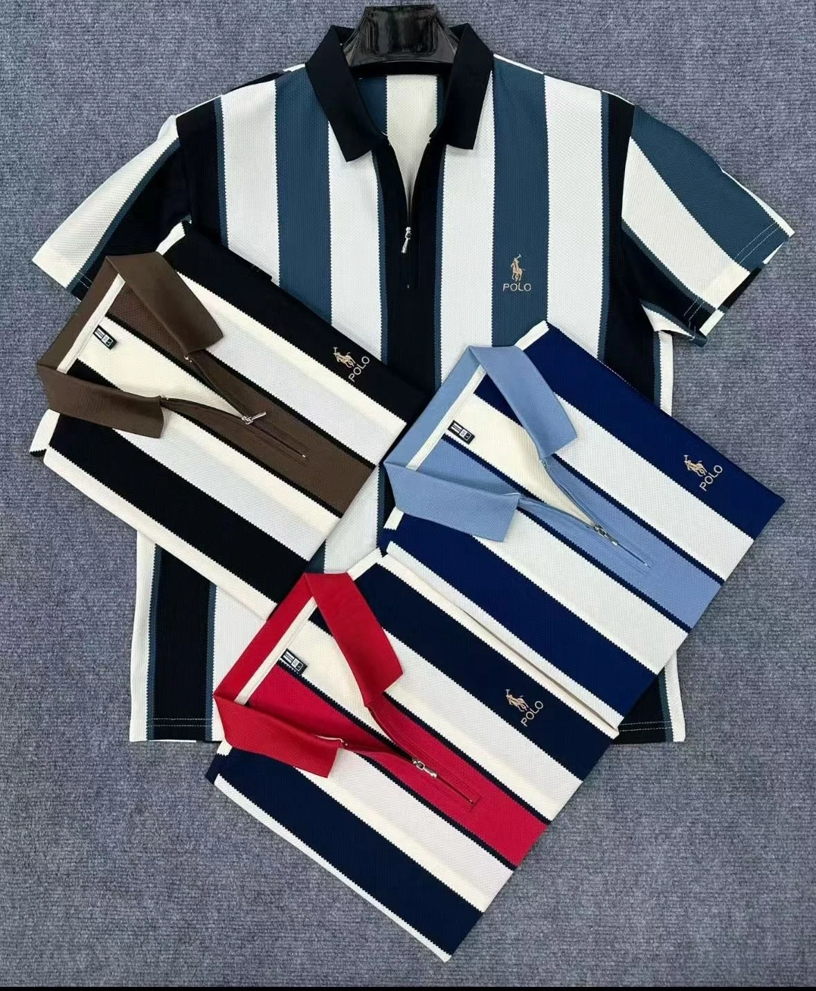 Men's Polo Shirts - Striped Zip Neck