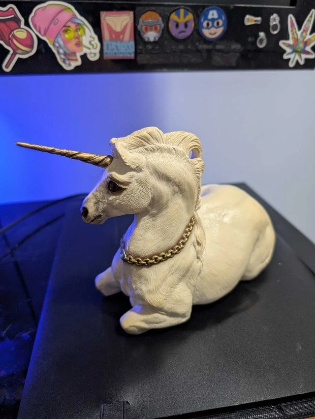 Behold this enchanting Windstone Editions Unicorn figurine, crafted in 1990 by Pena! This majestic creature is in used condition, showing its age with grace. Perfect for collectors or anyone who appreciates a touch of magic, this vintage piece is sure to bring a whimsical charm to any space. It has a gold chain and a jeweled pendant. I have 2 of them & prefer to sell as a set. See other listing to check out the other one. They are ready to go to a new home of someone who appreciates them as much as my grandmother did. She loved these. Whether you're a unicorn aficionado or simply looking for a unique decorative piece, this Windstone unicorn is ready to gallop into your home! If the ad is up, it's available!
