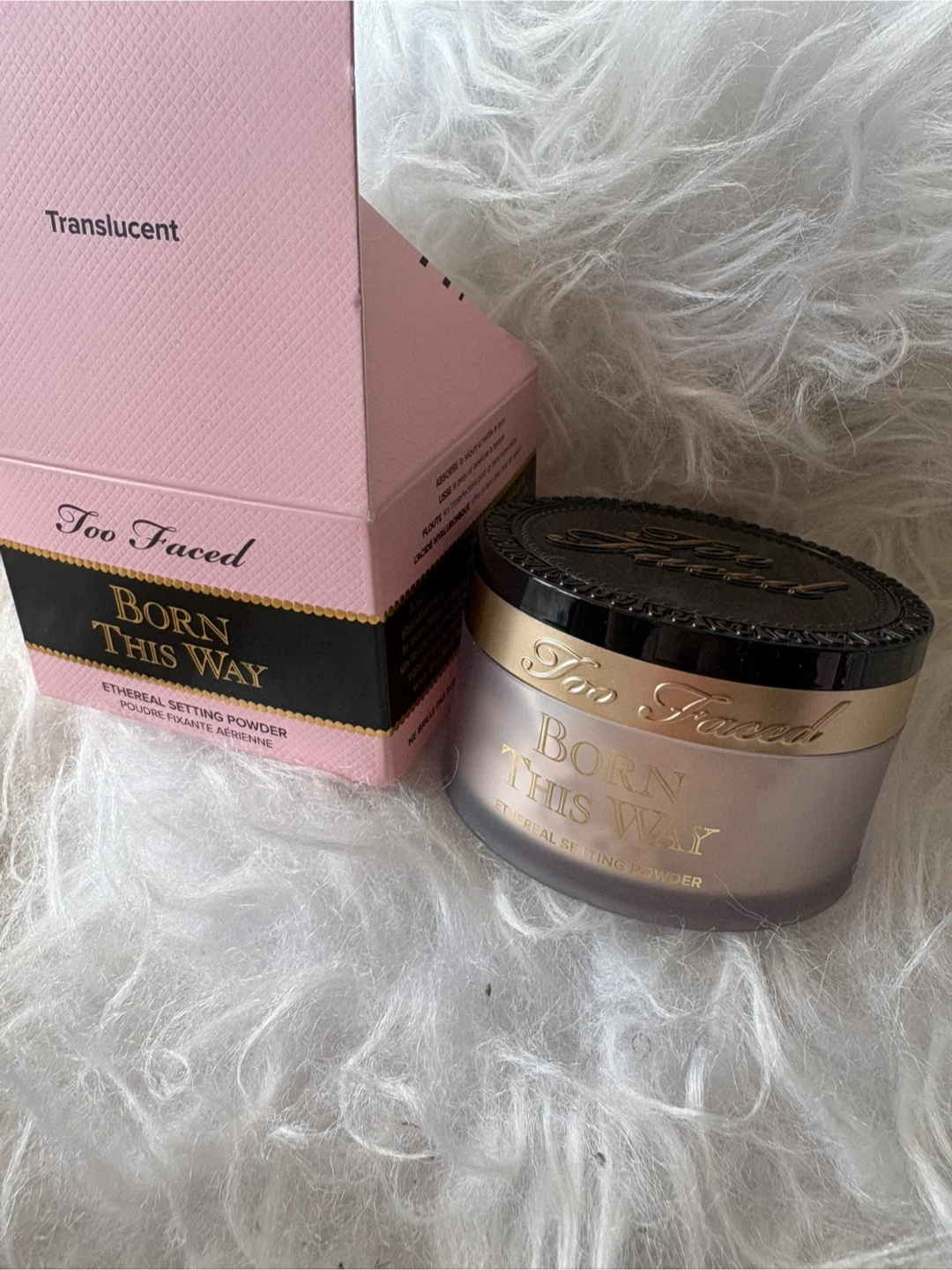 This is the Too Faced Born This Way Ethereal Setting Powder in the Translucent shade. It's a lightweight powder designed to set makeup. Works well to finish off a makeup look!