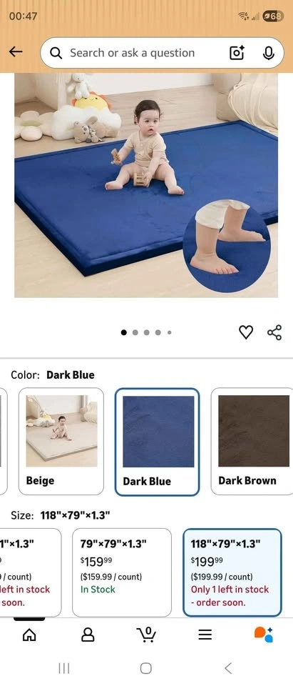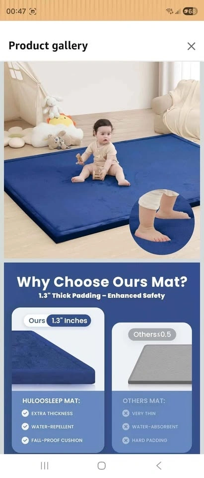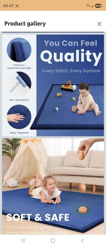 Brand new, never used. Open box. Huge size: 6.56 ft x 9.84 ft (118" x 79"). Thickness: 1.3 inch. Super soft surface with thick padding. Great for play area, kids room, living room, exercise, stretching, or floor seating. Non-slip bottom and quality stitched edges. Selling for $75 CASH. Sells online for around $199.99 + tax. Pickup only β Mississauga, near Winston Churchill & Britannia. Cash only.