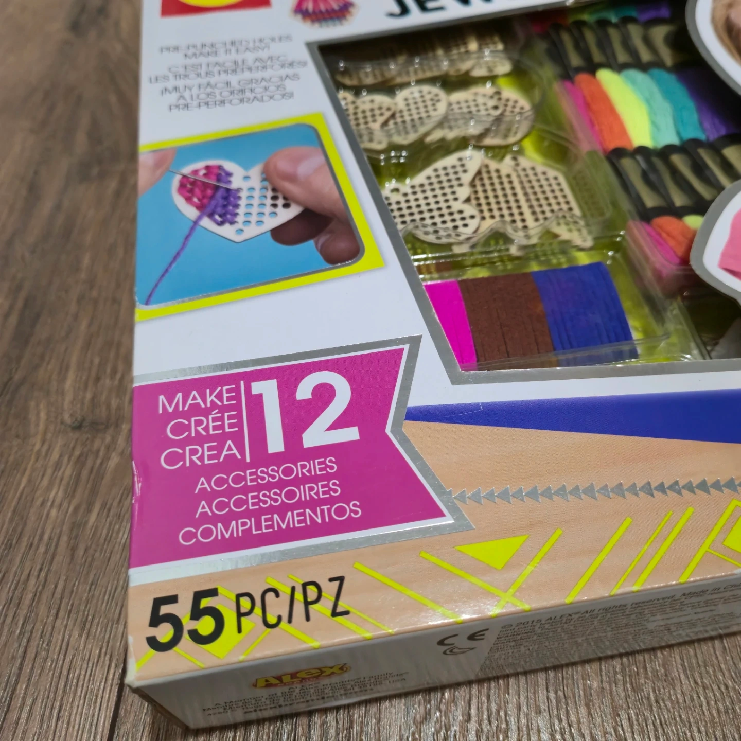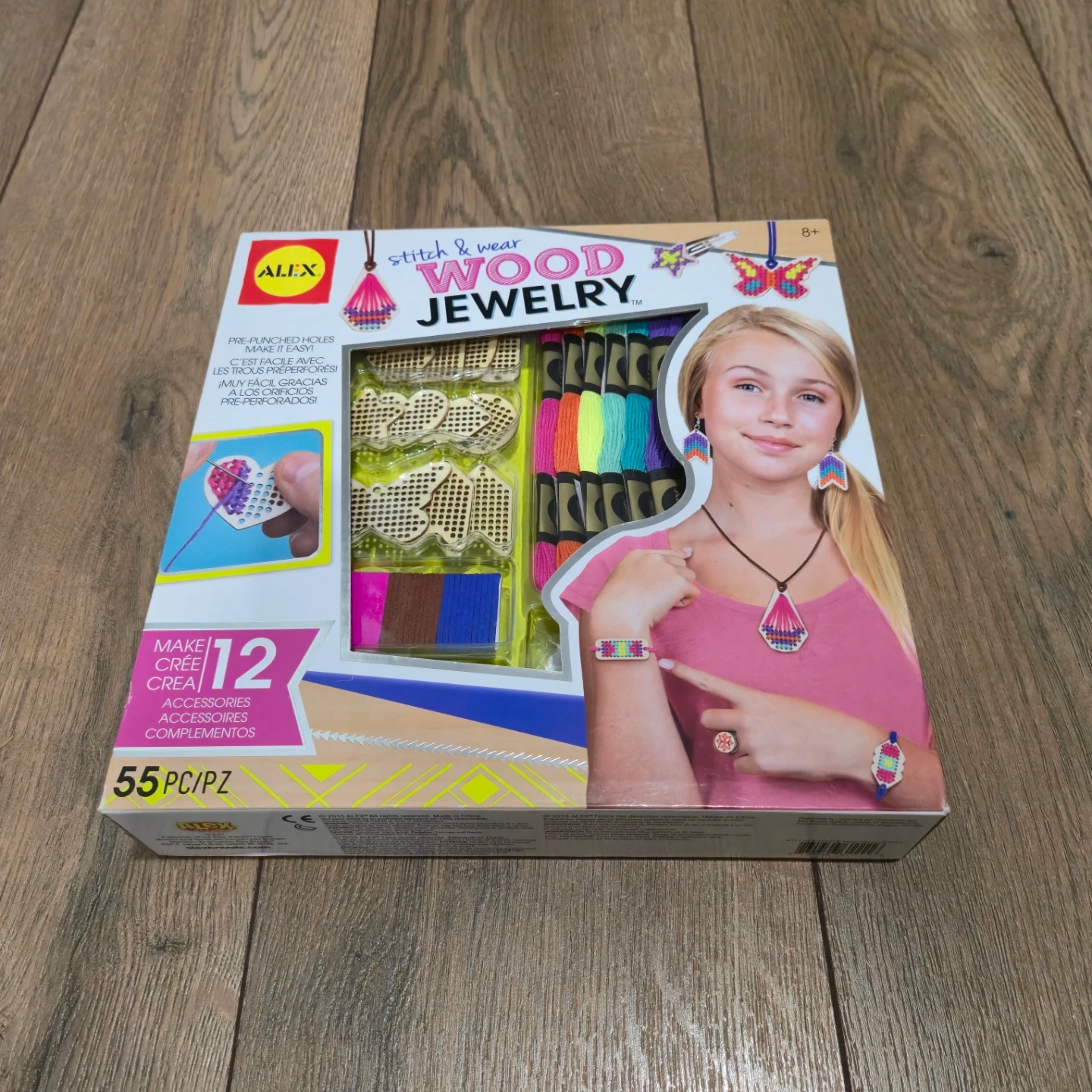 This ALEX craft kit lets you make up to 12 wood jewelry accessories. It includes pre-punched wooden charms and 6 colours of embroidery floss. Also comes with polyurethane cords, wood beads, jump rings, needles, and hair clips.