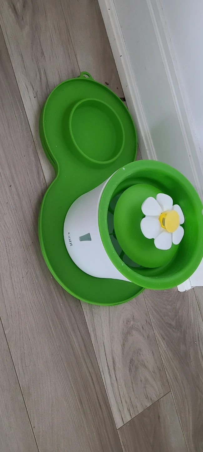 This Catit drinking fountain is designed to encourage hydration for your pets. It includes the fountain and a green mat.