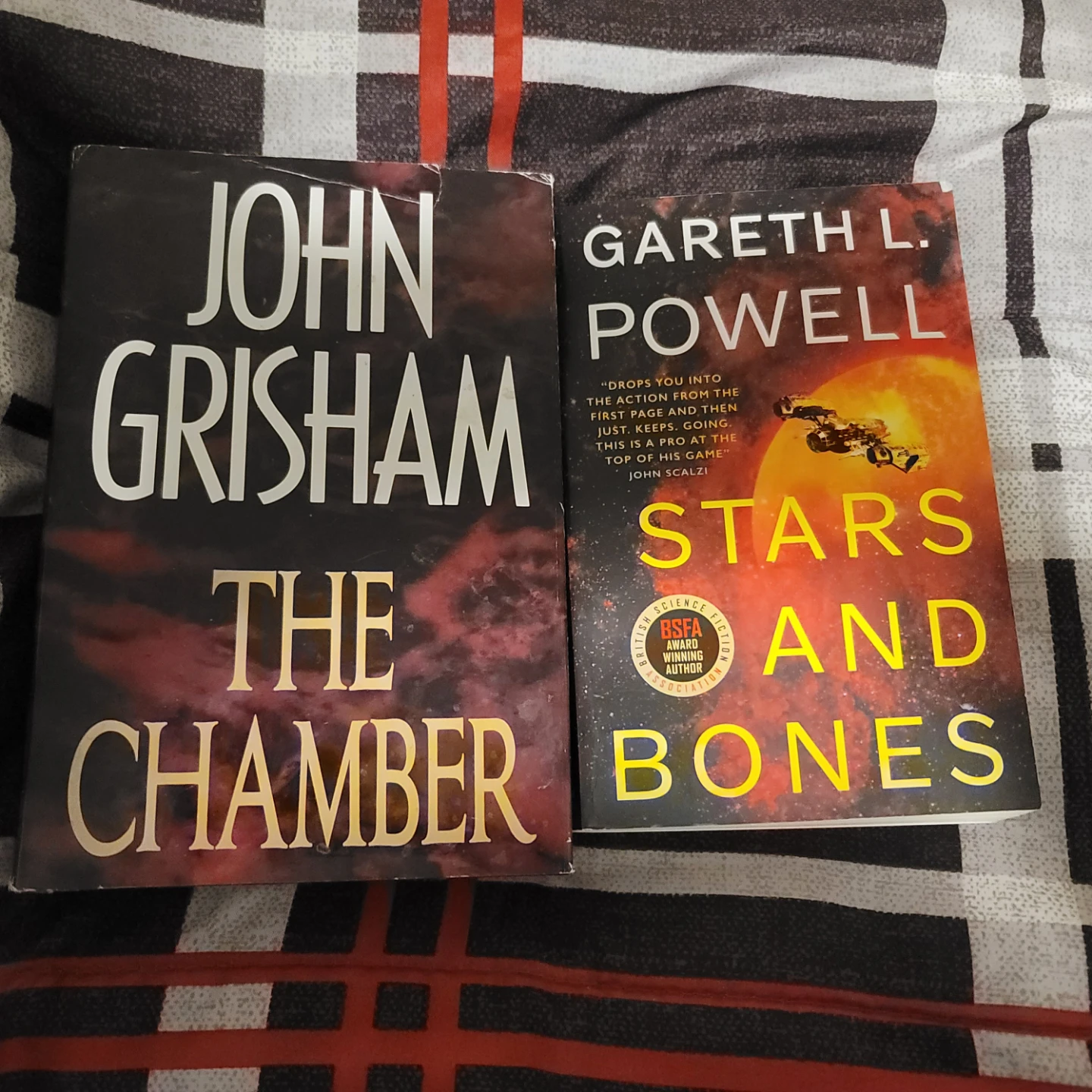 Includes John Grisham's 'The Chamber' and Gareth L. Powell's 'Stars and Bones'. These are paperback novels. Perfect for avid readers looking for thrillers and science fiction adventures.