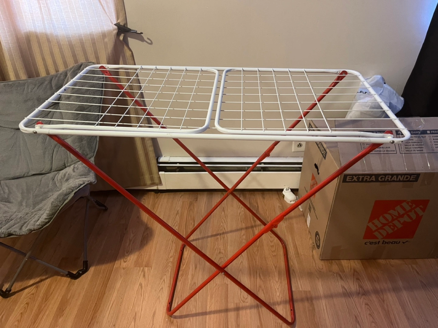 Buy & SellPortable Foldable Clothes Drying RackPortable Foldable Clothes Drying Rack$10Compact design, ideal for small spaces. Metal frame, white and red. Folds flat for easy storage. Great for drying clothes or other items.ConditionGoodWHERE TO MEETCheck LocationView MapSELLERverifiedImzLeslie Valley762 reviews0 chats·0 favorites·19 viewsSEND CHAT TO SELLERHi Imz! I’m interested in your listing.Hi Imz! I’m interested in your listing.Get the Karrot app to chatSign In to chat