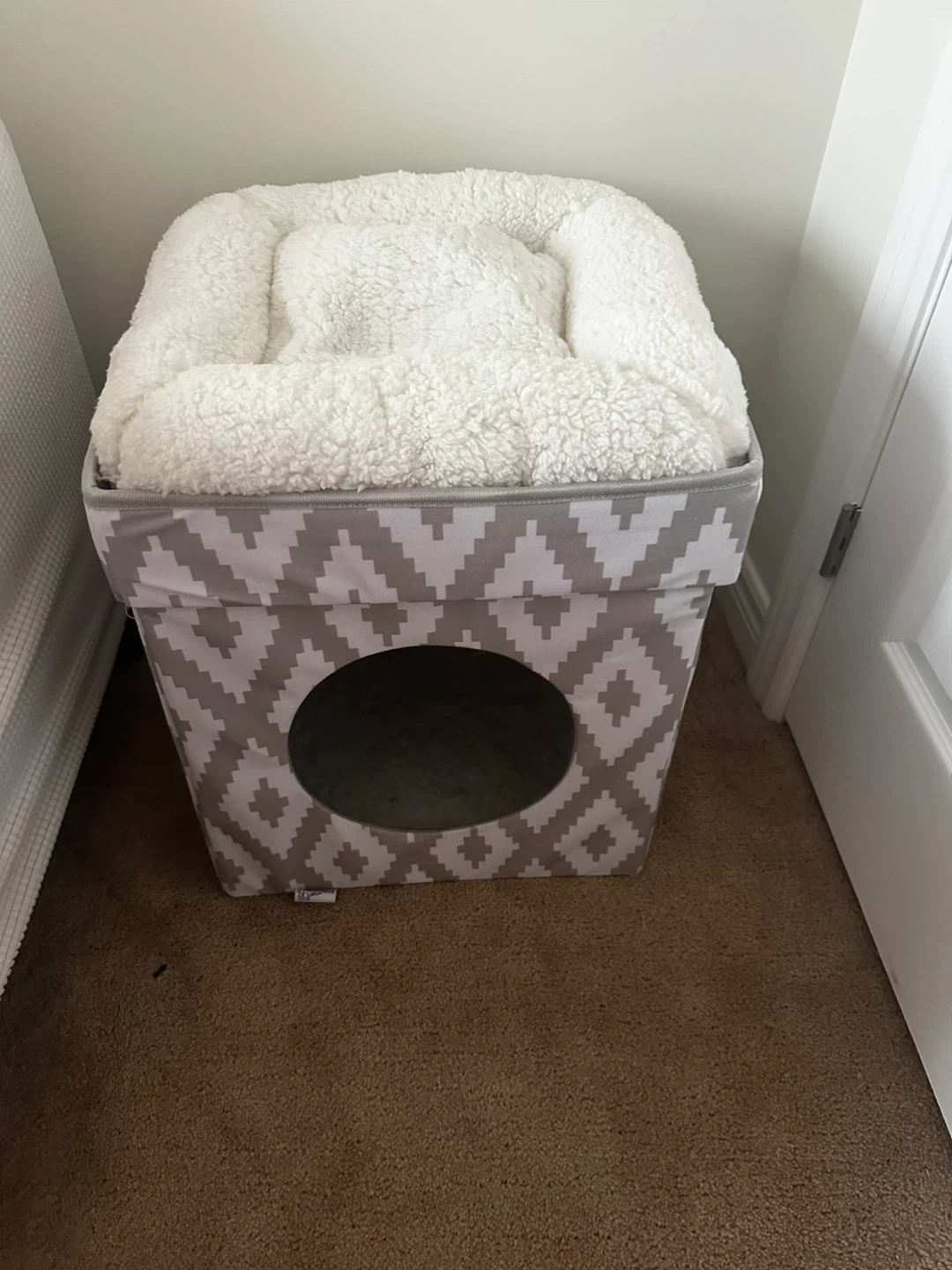 This foldable pet cube offers a cozy spot for your cat or small dog.