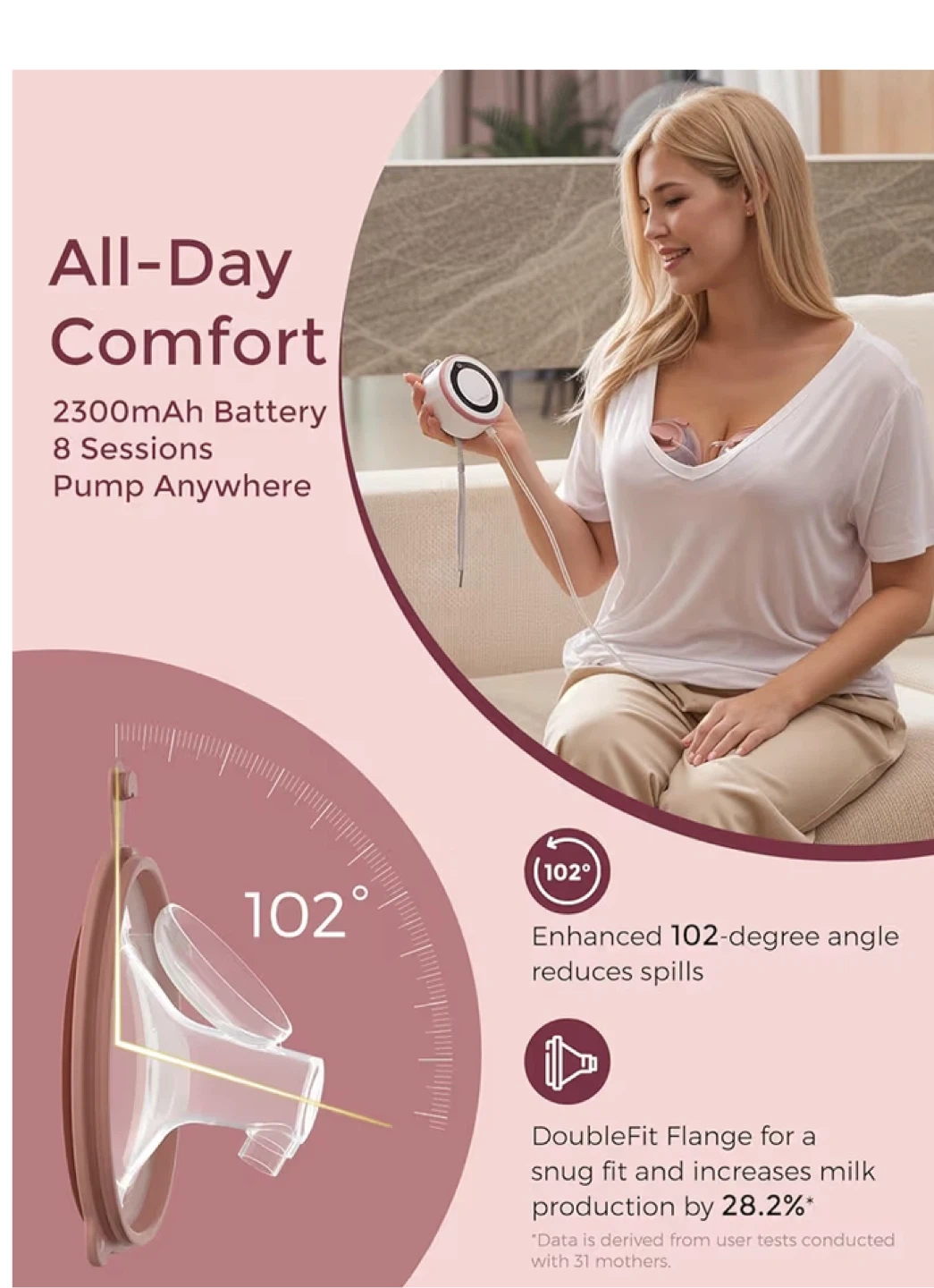 - DoubleFit Flange for a snug fit and increased milk production