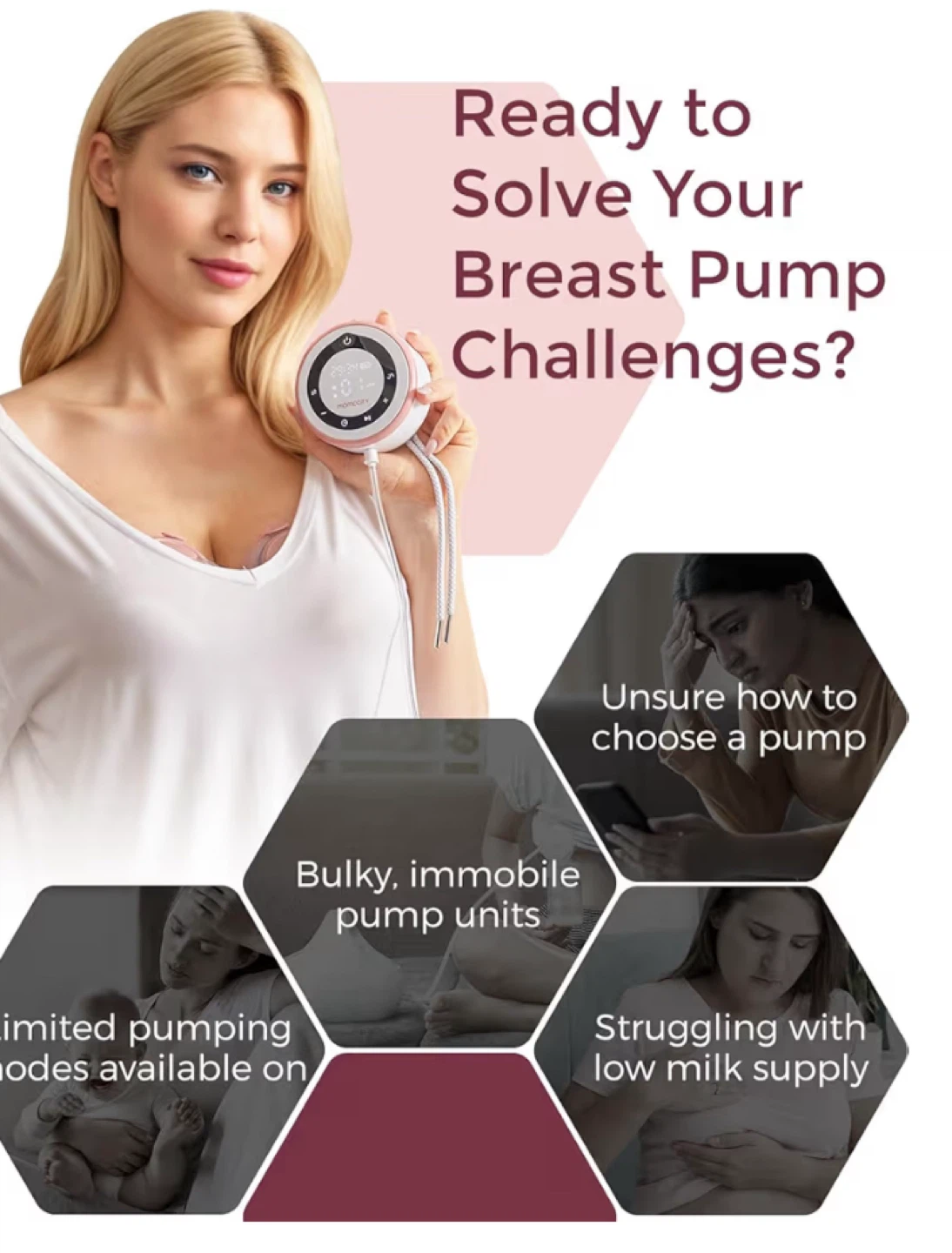 Selling a momcozy V1 Pro Breast Pump. It features hospital-grade suction and is designed for a contaminant-free milk collecting process.