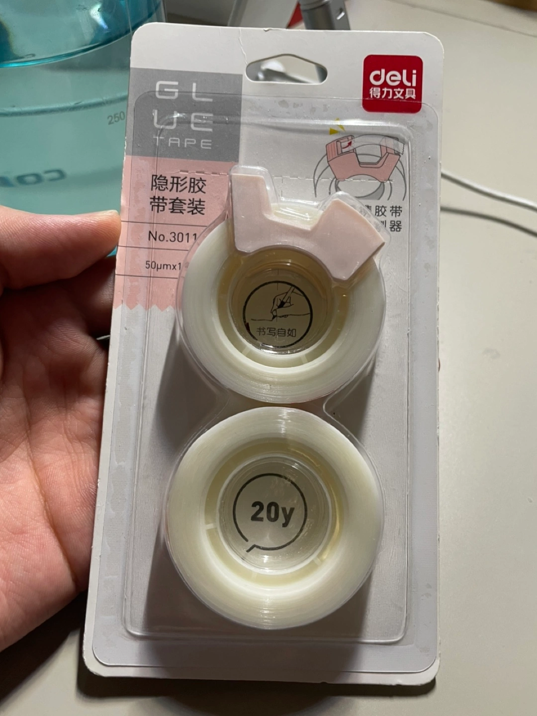 4 packs of Deli brand glue tape dispensers. Each pack includes two rolls of tape.