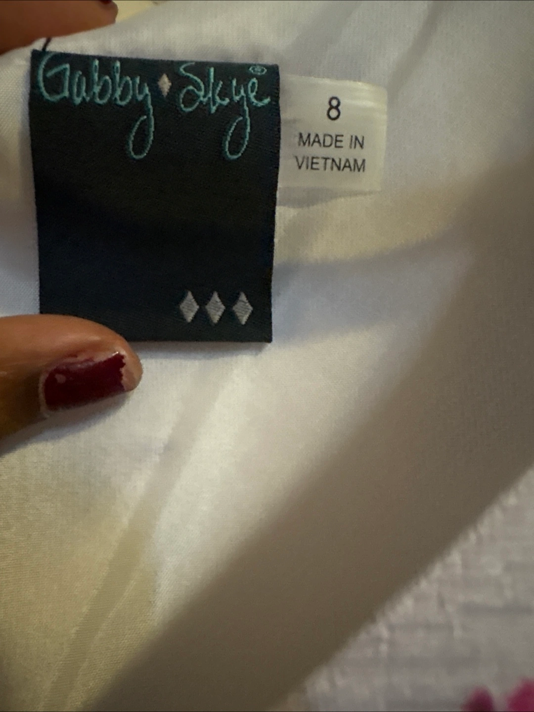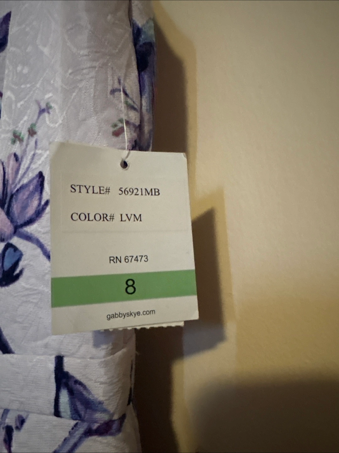 Selling a beautiful Gabby Skye dress in size 8! It features a lovely floral pattern, perfect for any occasion. The style number is 56921MB and the colour is LVM. It's in brand new condition and ready for a new home. The dress was not worn and the tag is still on.