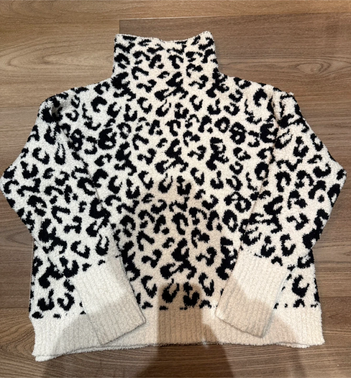 UGG women's leopard print fleece turtleneck sweater. Soft and cozy material for chilly days! Size XL. Made with 78% polyester and 22% nylon.