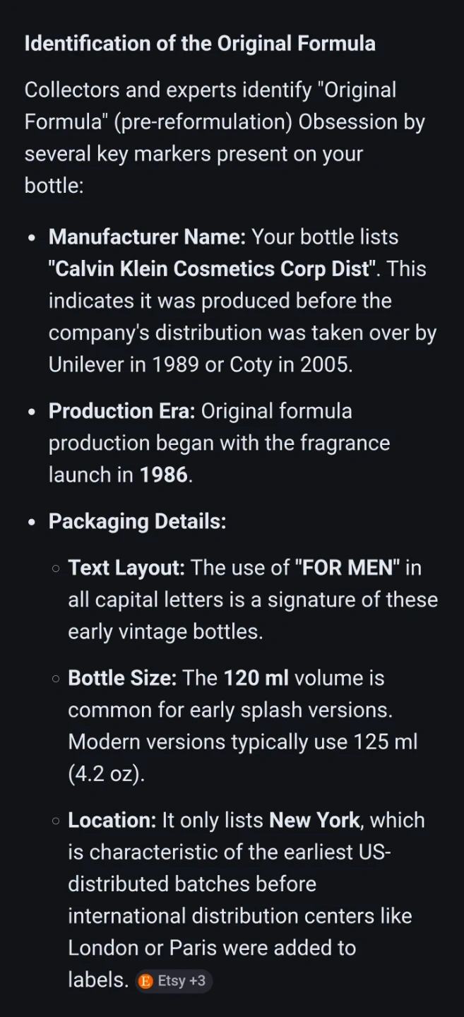 Selling a vintage bottle of original formula Calvin Klein Obsession for men aftershave, a classic scent before it was purchased by Coty. This bottle contains approximately 85% of the original 120ml. It's a timeless fragrance that makes a statement.
