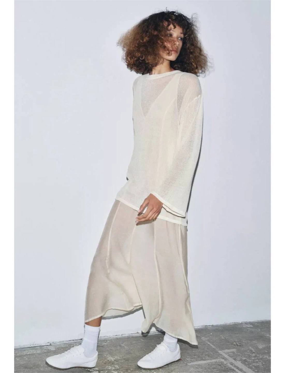 Long cream combination dress Zara, size M
