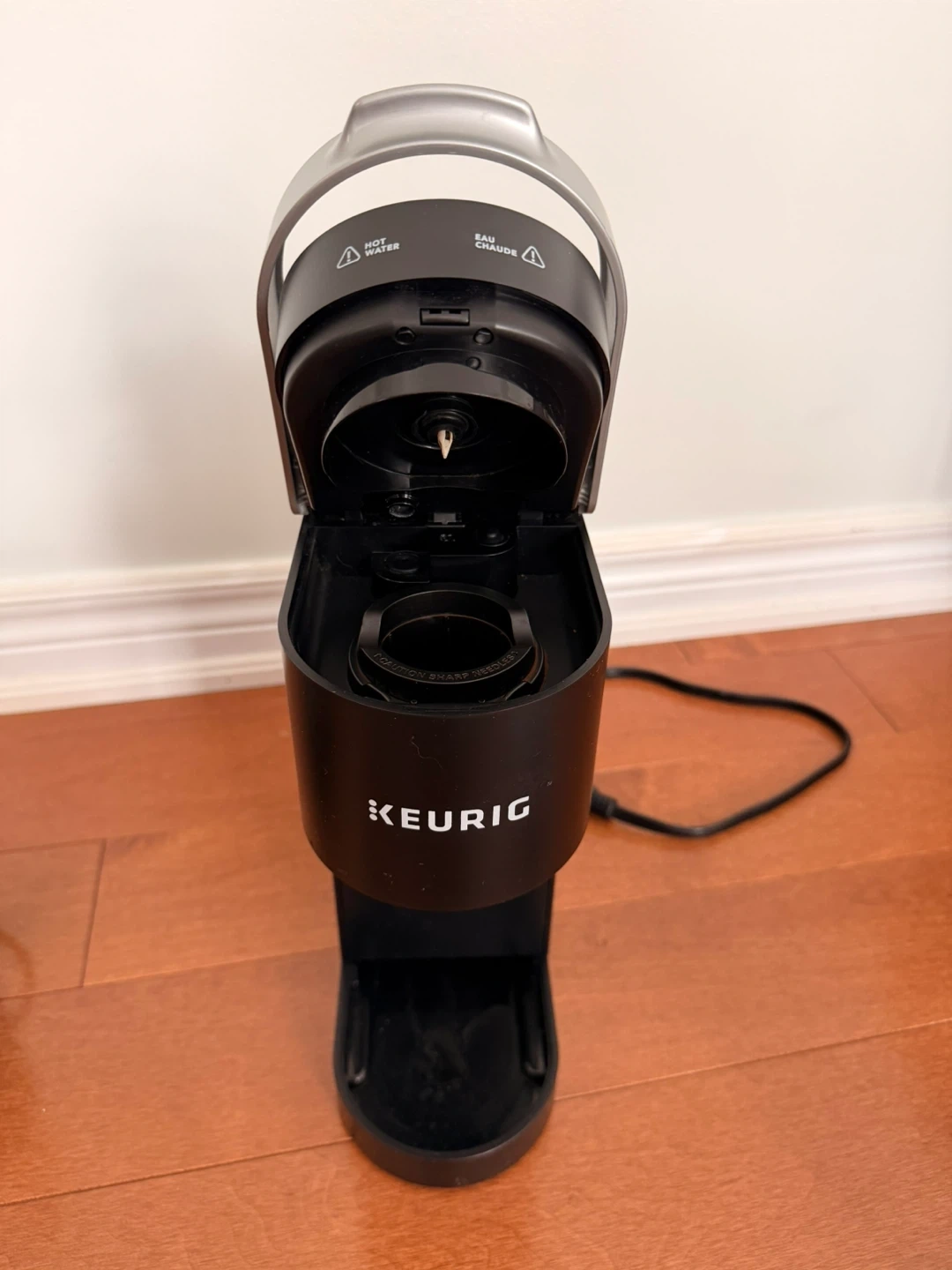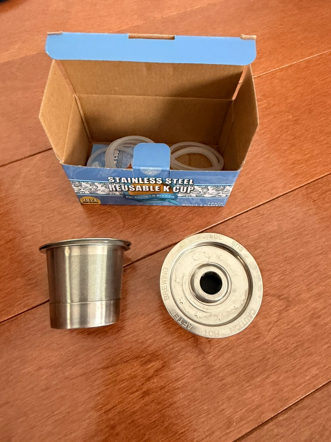 Keurig single-serve coffee maker with a separate milk frother. Comes with reusable K-cups (stainless steal and individual use paper cups for deliciousness - no plastic for you!) This appliance is great for making a quick cup of coffee or specialty drinks. You have everything you need here to get started. Just add ground coffee!!