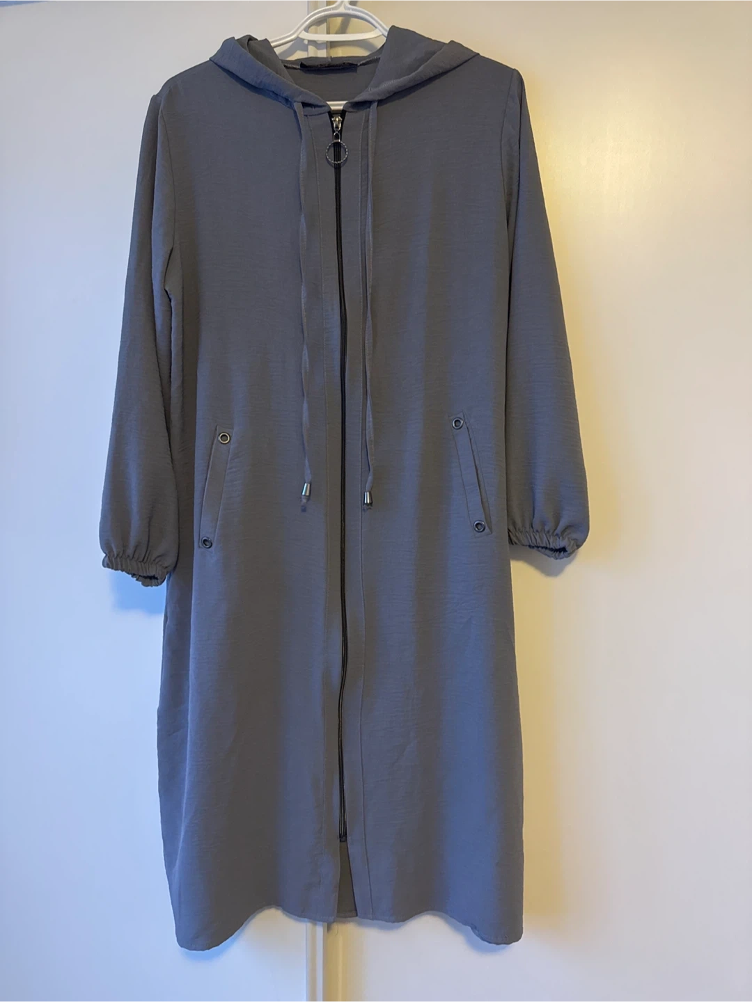Buy & SellGrey Zip-Up Hooded Duster CoatGrey Zip-Up Hooded Duster Coat$5Selling a comfy grey duster coat with a hood and zip-up front. It's in great condition and perfect for layering!ConditionLike newWHERE TO MEETCheck LocationView MapSELLERMJMarkland Wood343 reviews0 chats·1 favorites·43 viewsSEND CHAT TO SELLERHi MJ! I’m interested in your listing.Hi MJ! I’m interested in your listing.Get the Karrot app to chatSign In to chat