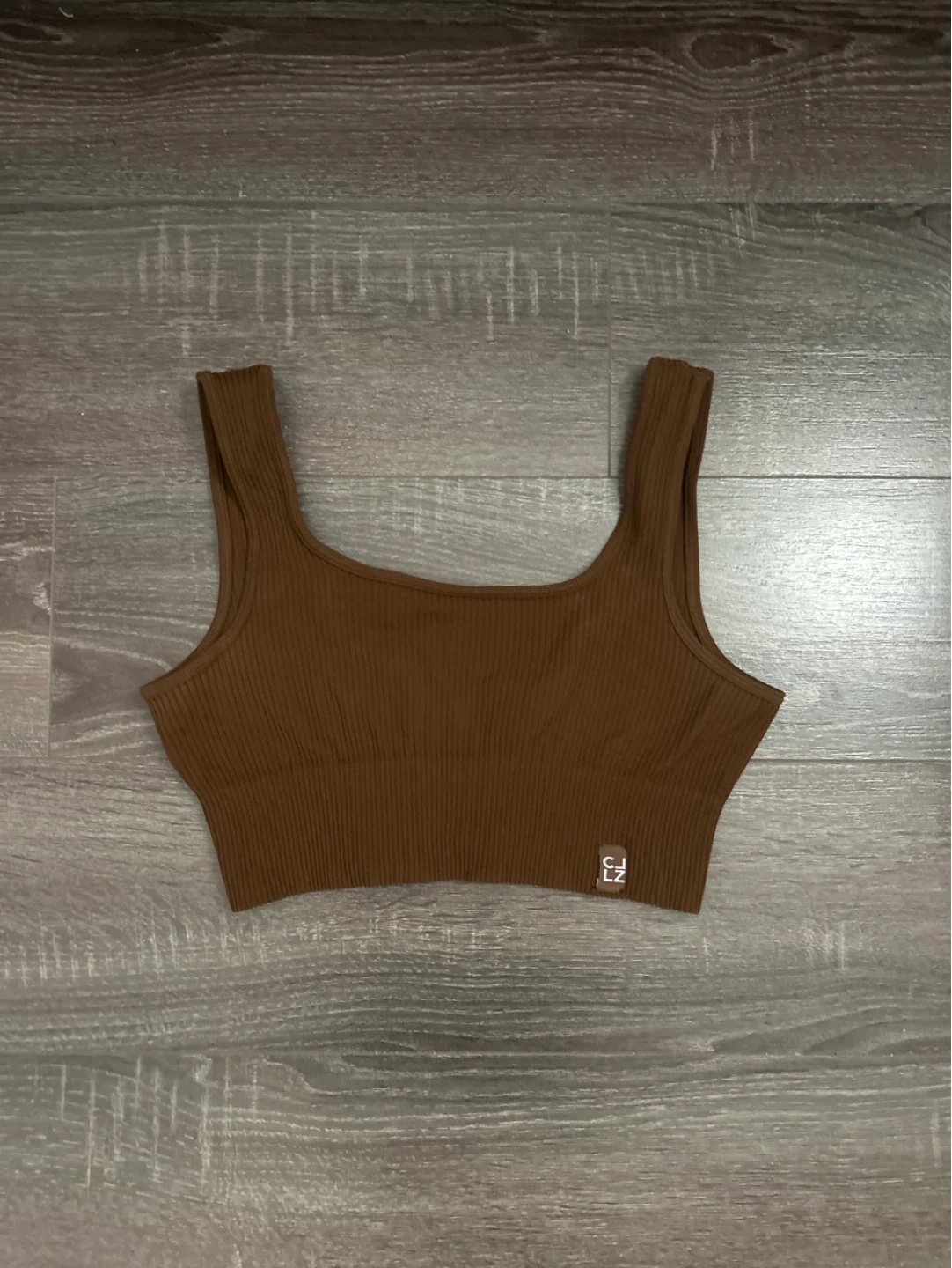 Selling a Calzedonia activewear set in a lovely brown colour! This set includes a sports bra and leggings, both in a ribbed texture. The size is a 'TU-ONE SIZE'. It's in great condition and ready for your next workout or cozy day in!