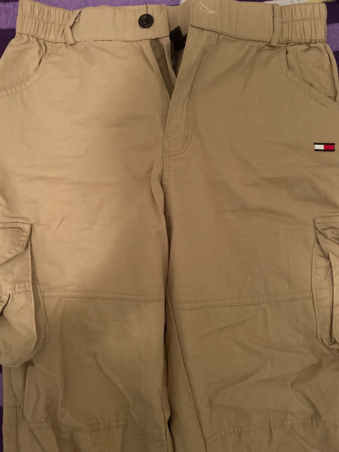 Tommy Hilfiger cargo in a tan colour. Features multiple pockets and elastic waistband. Cotton blend fabric.