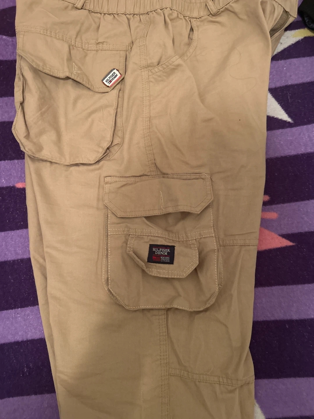 Tommy Hilfiger cargo in a tan colour. Features multiple pockets and elastic waistband. Cotton blend fabric.