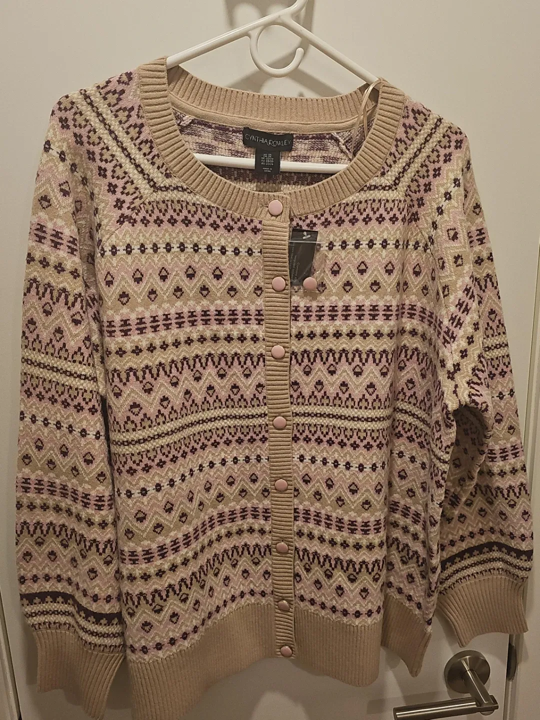 Cynthia Rowley Fair Isle Cardigan Sweater 2x