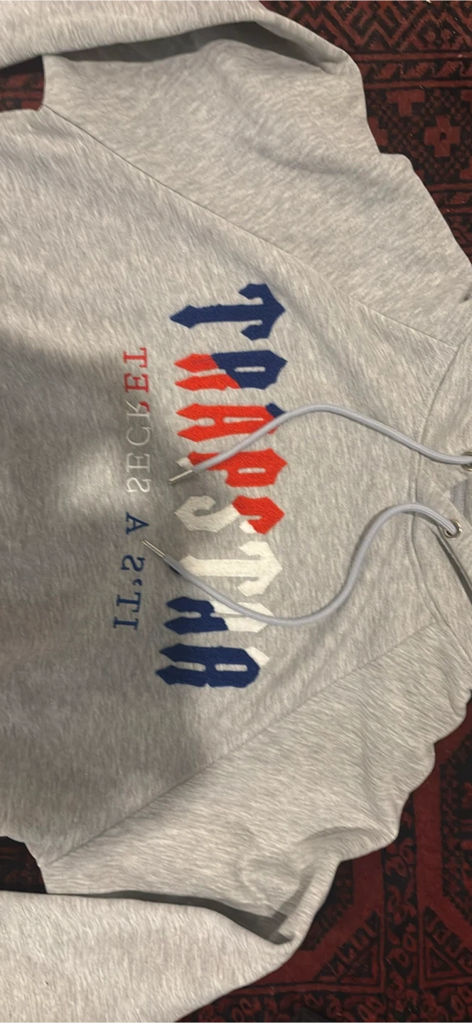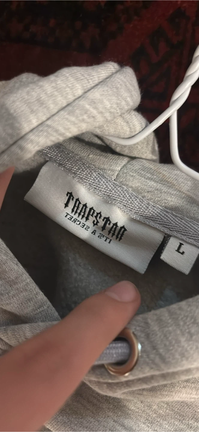 Selling a Trapstar hoodie in grey, size large. It's in great condition and ready for a new owner!
