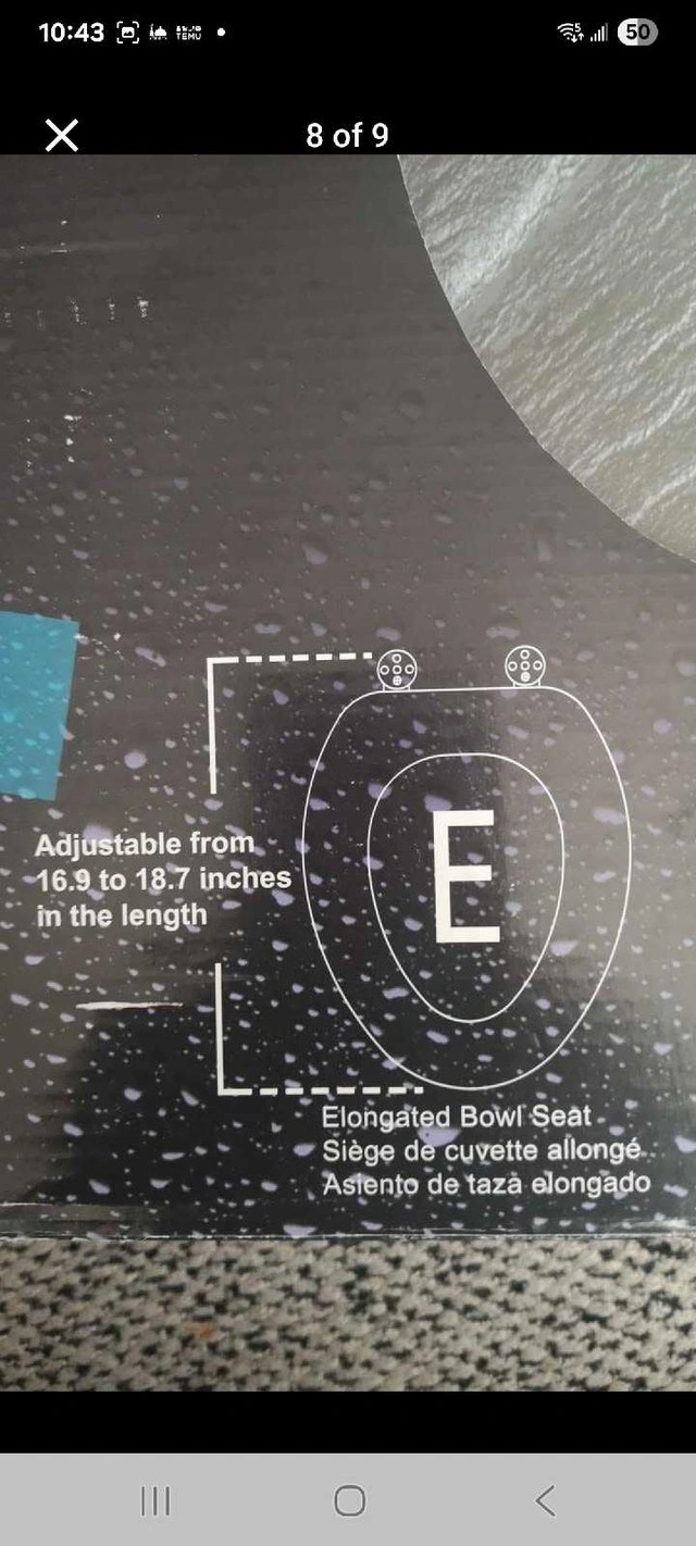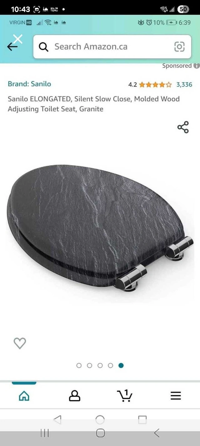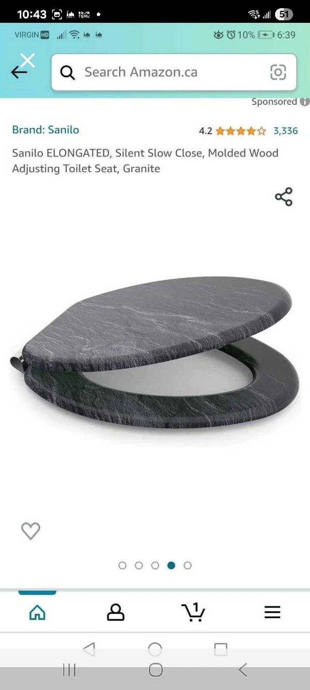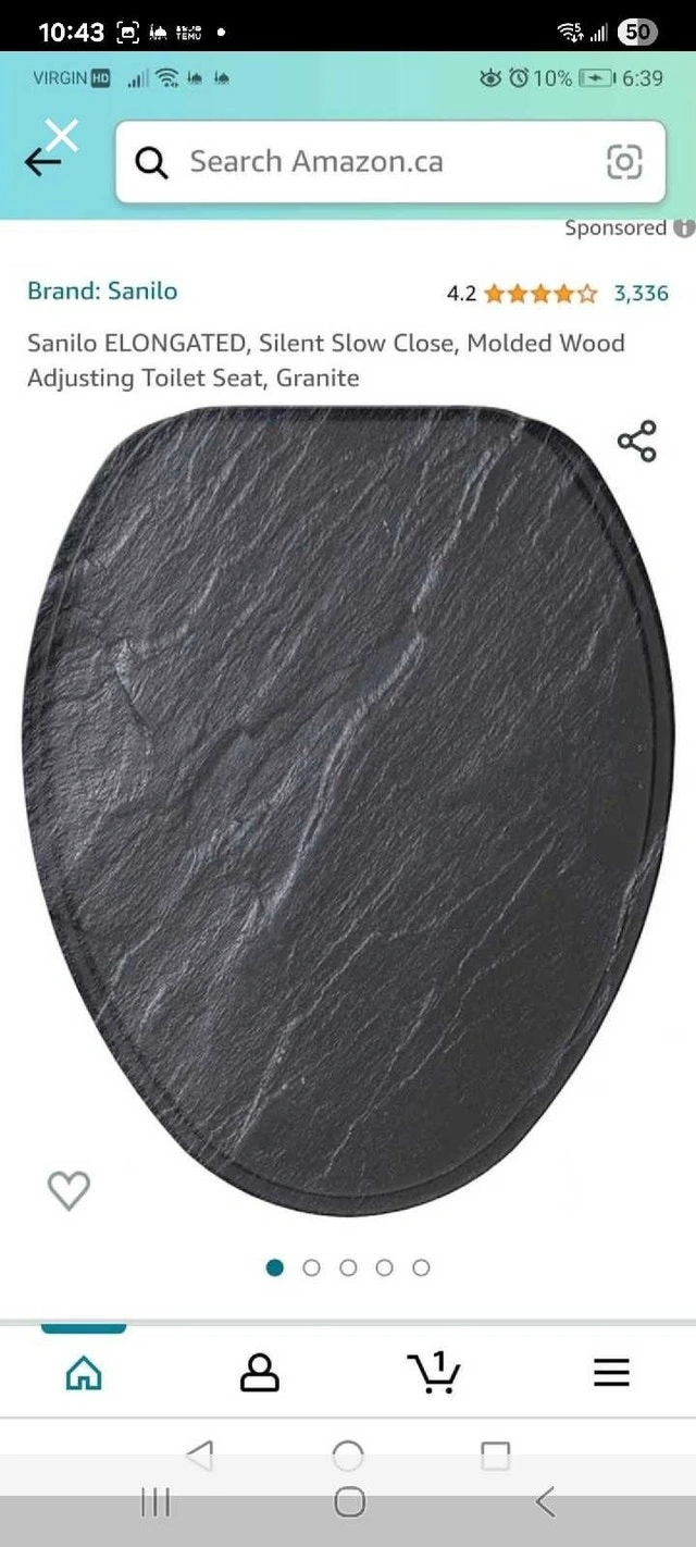 Spruce up your bathroom with this Sanilo elongated toilet seat, featuring a stylish granite design! It has a silent slow-close mechanism for added convenience. The molded wood construction ensures durability and comfort. Specifications: Brand: Sanilo, Shape: Elongated, Material: Molded Wood, Color: Granite, Features: Silent Slow Close, Adjustable Hinges. Condition: New. Cash accepted.