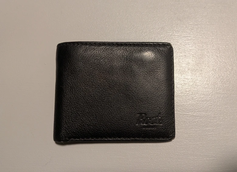 Black leather wallet by Roots Athletics with lots of space for cash, debit / credit / gift cards, and coins. Great condition.