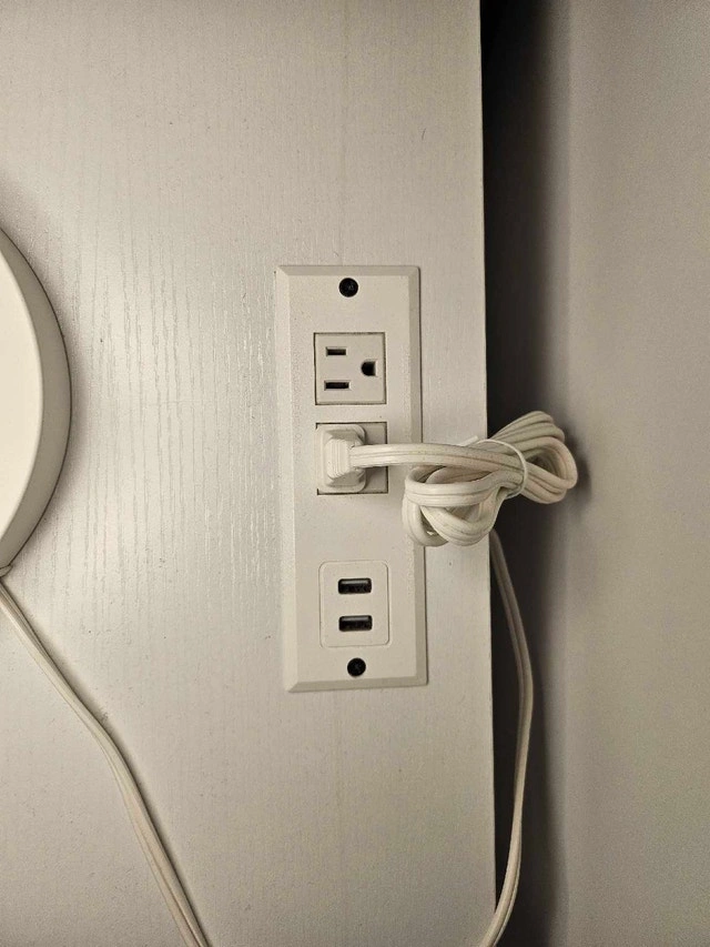 This is a drawer, open shelf, and an electrical outlet with USB ports on the back. It's in used, but good condition. It’s perfect for keeping your bedside essentials within easy reach. Drawer for storage, open shelf for display, built-in electrical outlet and USB ports. Cash accepted.