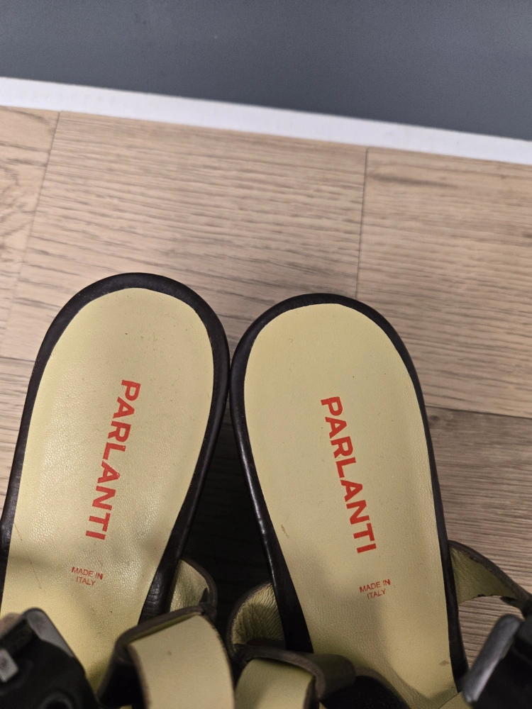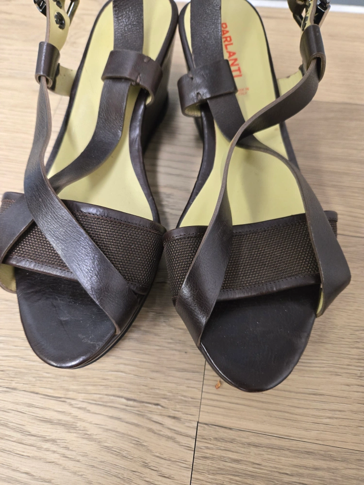 These Parlanti wedge sandals are a stylish addition to any wardrobe! They feature a unique strap design and a comfortable wedge heel. The colour is a lovely brown. Perfect for dressing up or down!