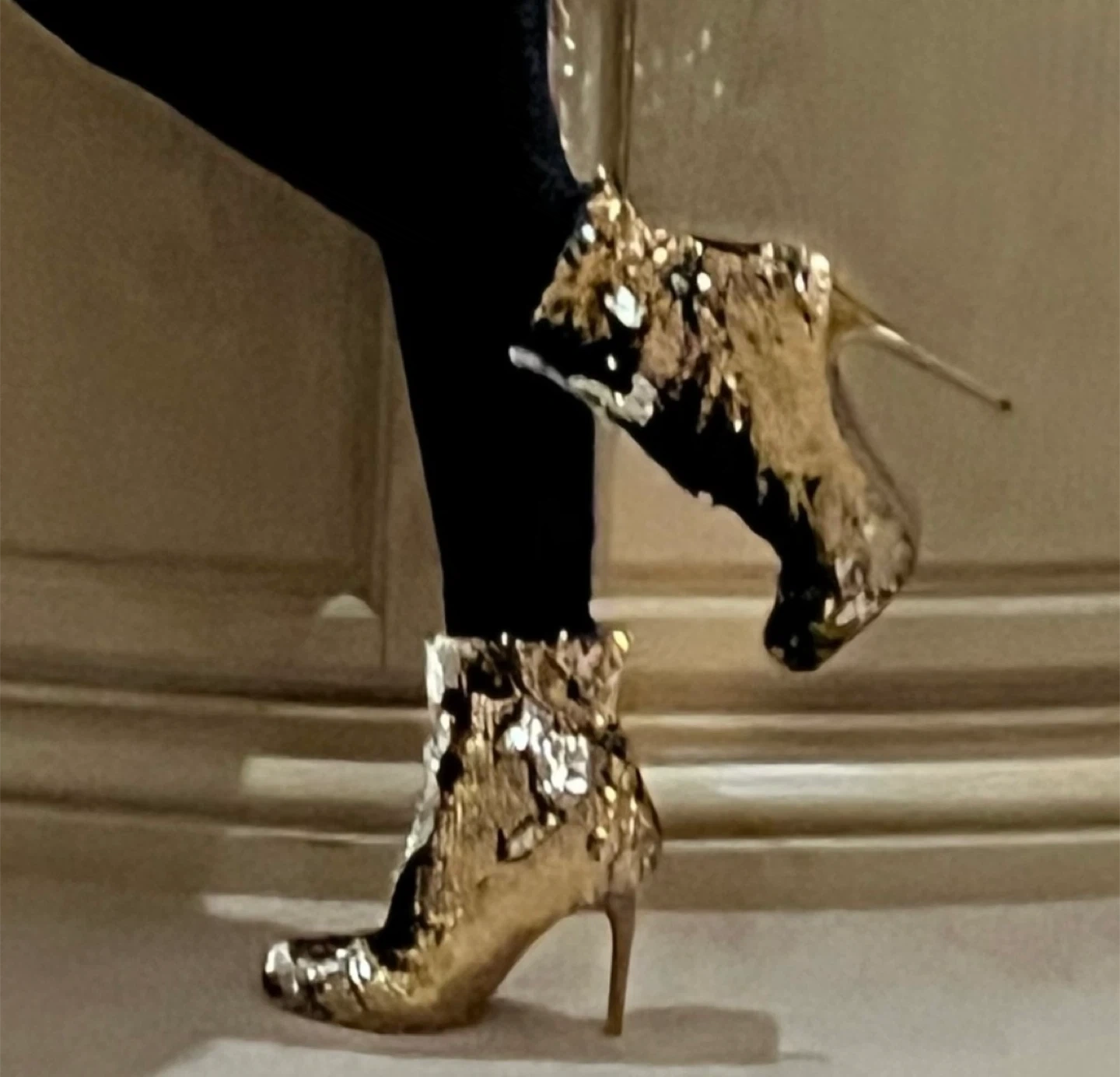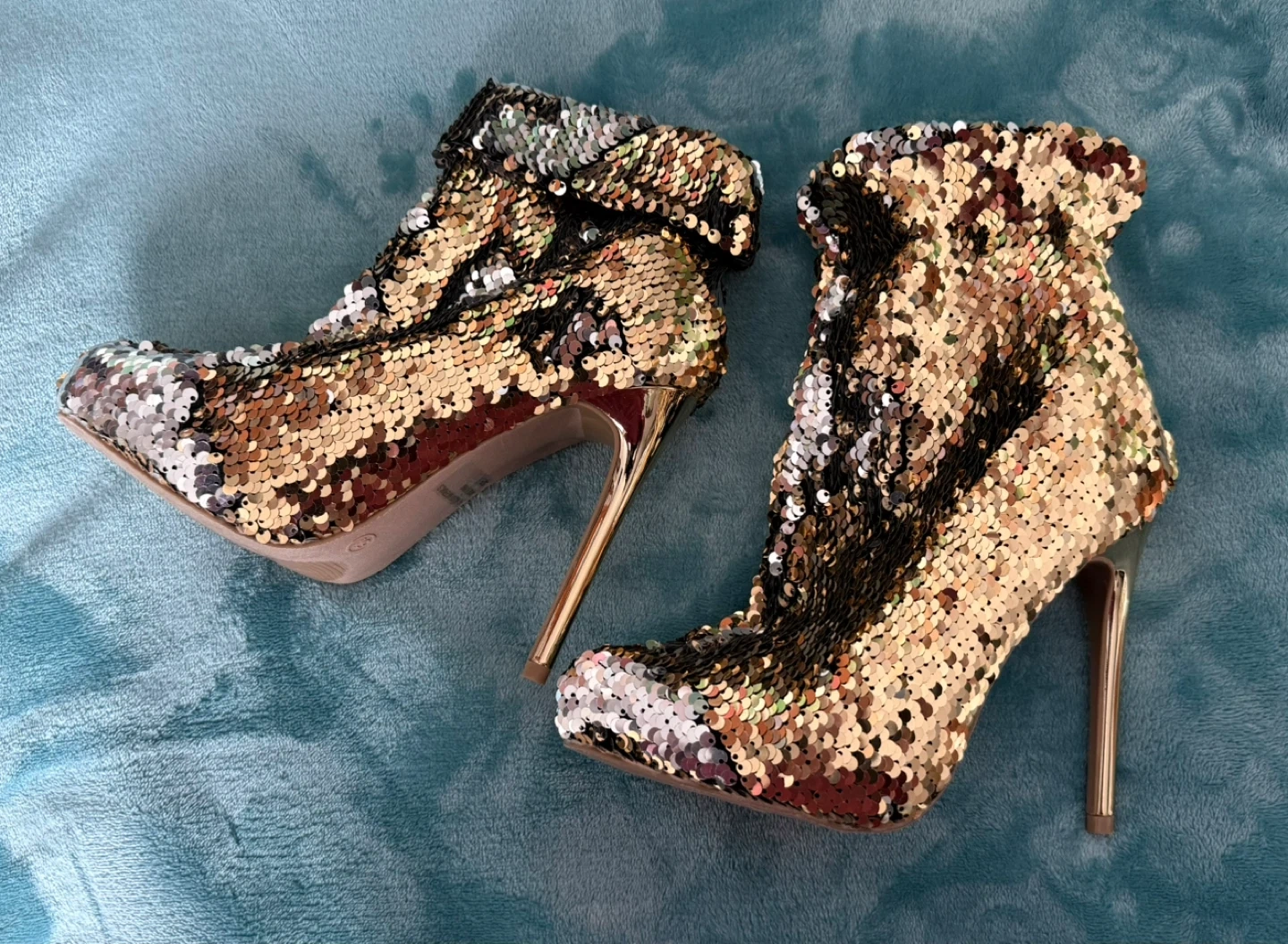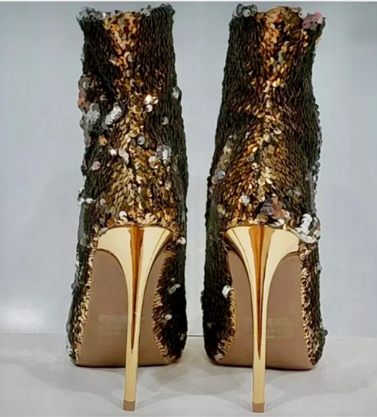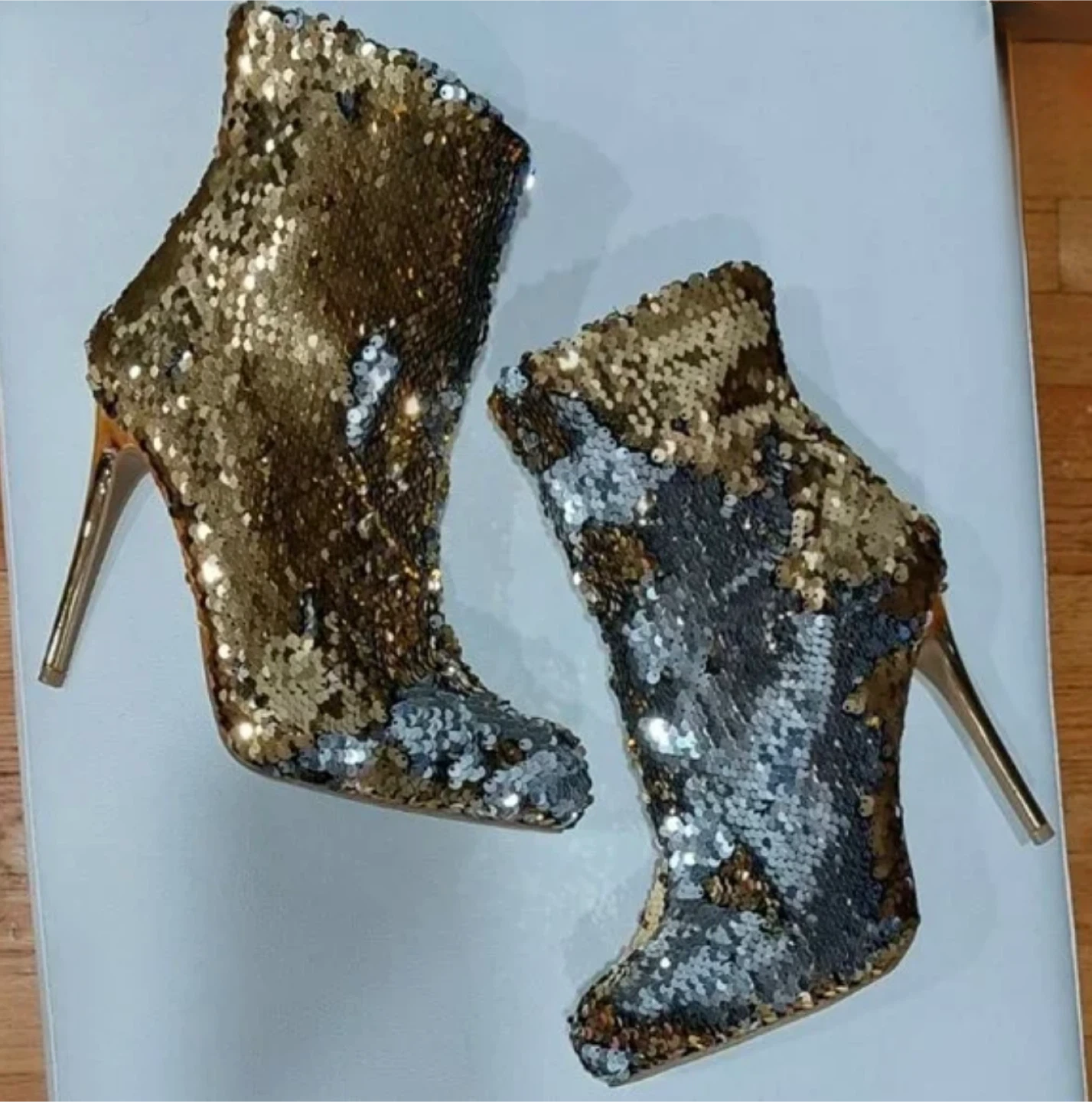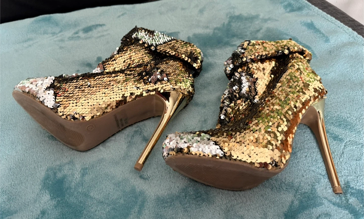 Wild Diva Gold & Silver Sequin Ankle Boots with Stiletto Heels