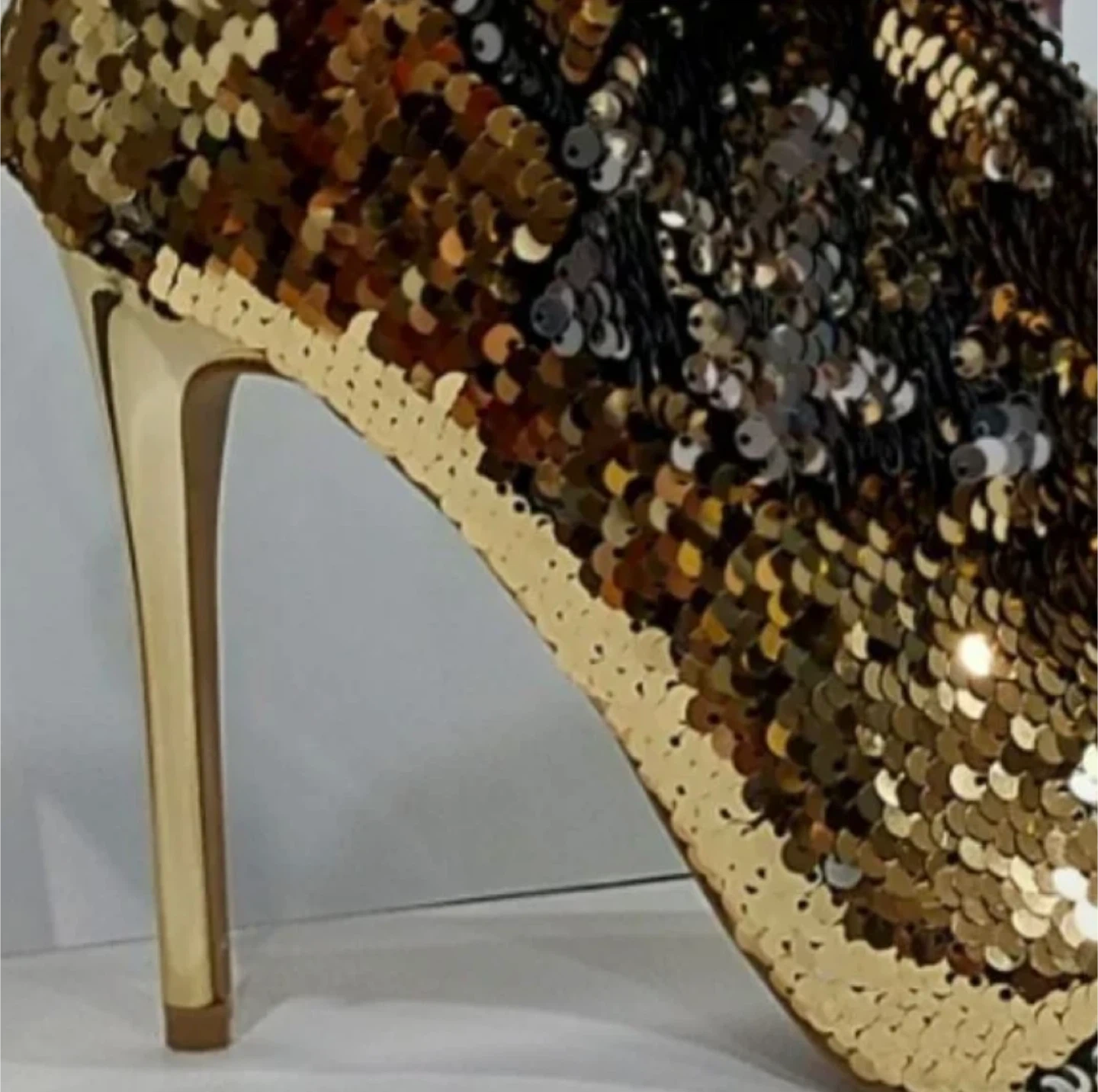 Wild Diva Ankle Boots Sparkly gold & silver sequin featuring a stiletto gold heel. These dazzling boots are perfect for a night out or special occasion! They're covered in shimmering sequins for maximum impact.