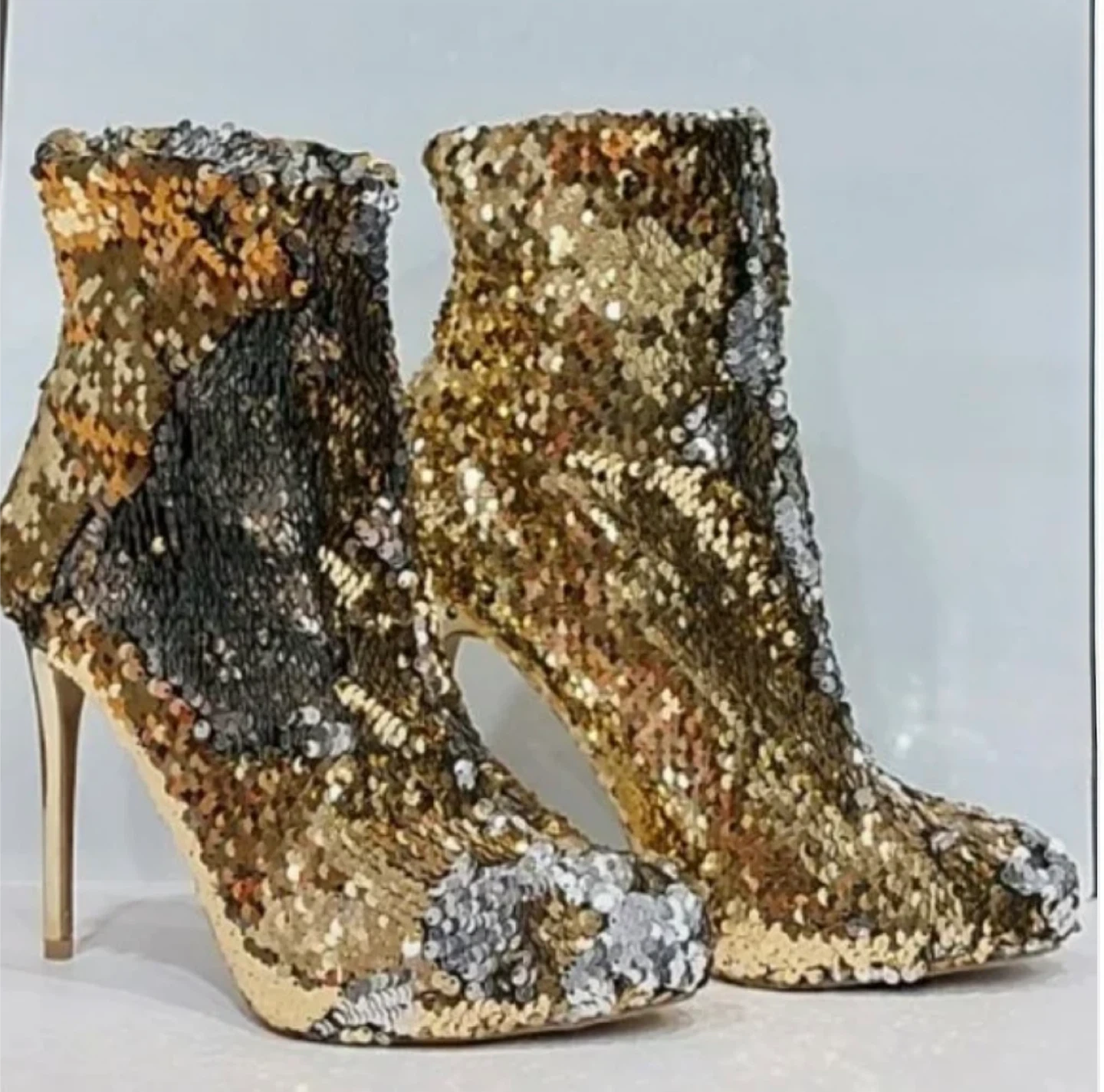 Wild Diva Gold & Silver Sequin Ankle Boots with Stiletto Heels