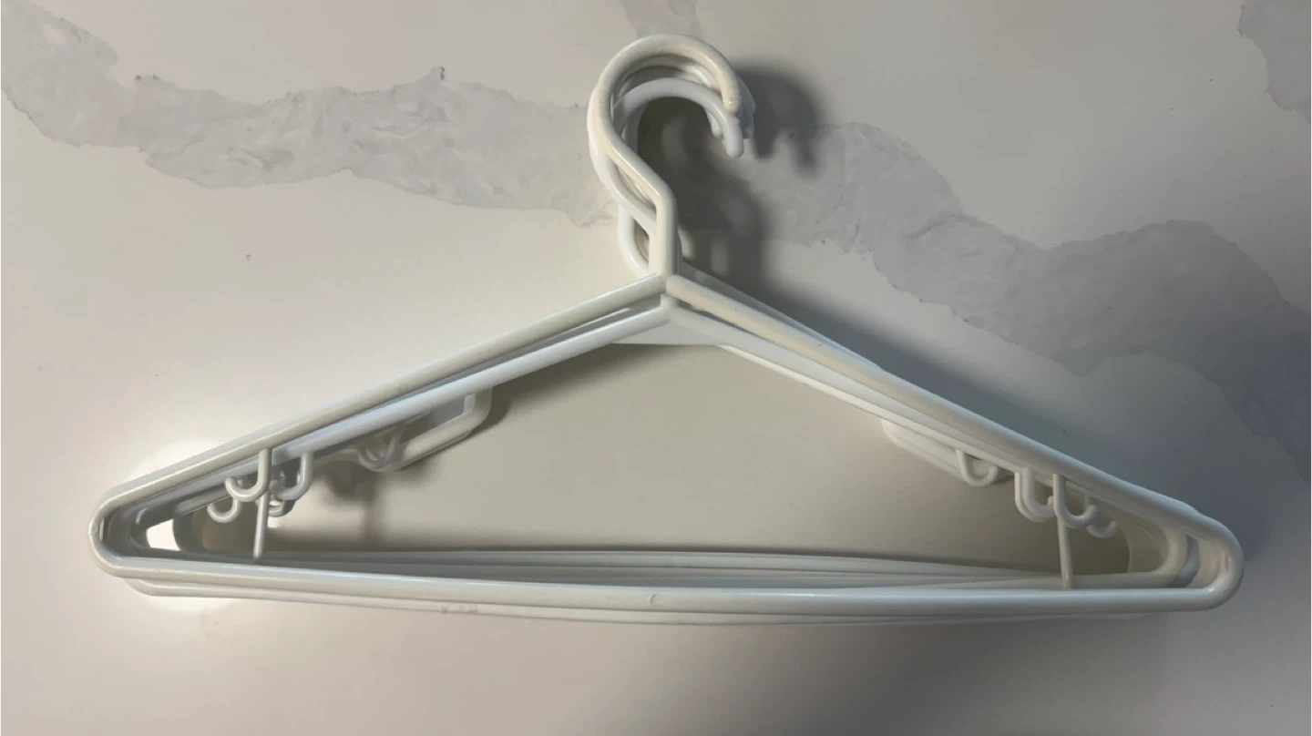 A set of 10 white plastic clothes hangers. These are standard hangers, suitable for most garments. They're durable and great for organizing your closet