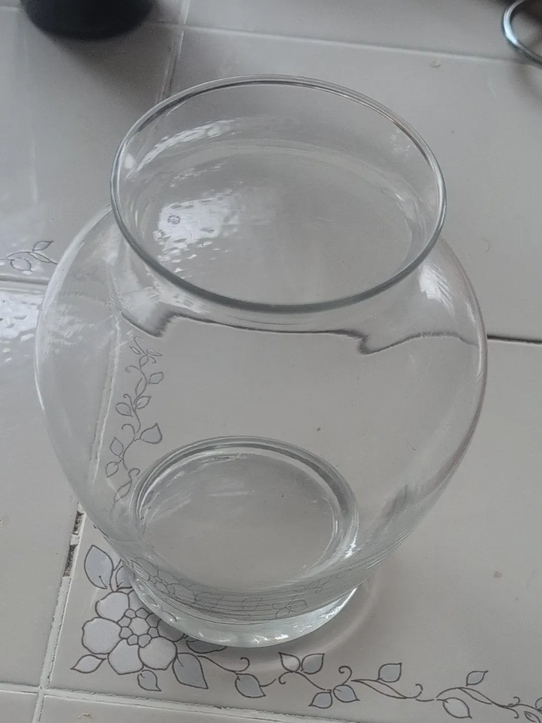 A clear glass vase with a decorative floral etched pattern. It's perfect for displaying flowers or as a standalone decorative piece. Glass material.