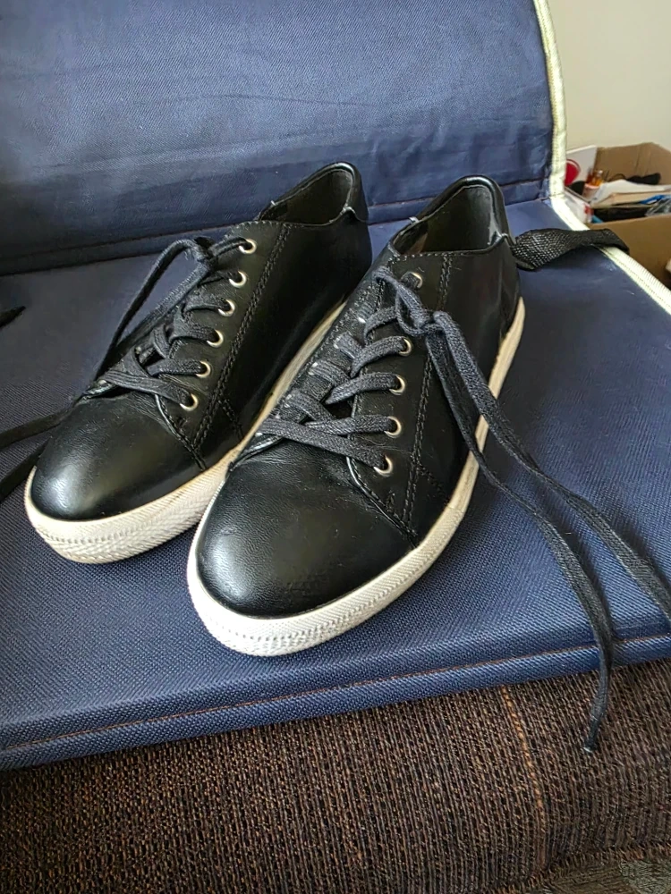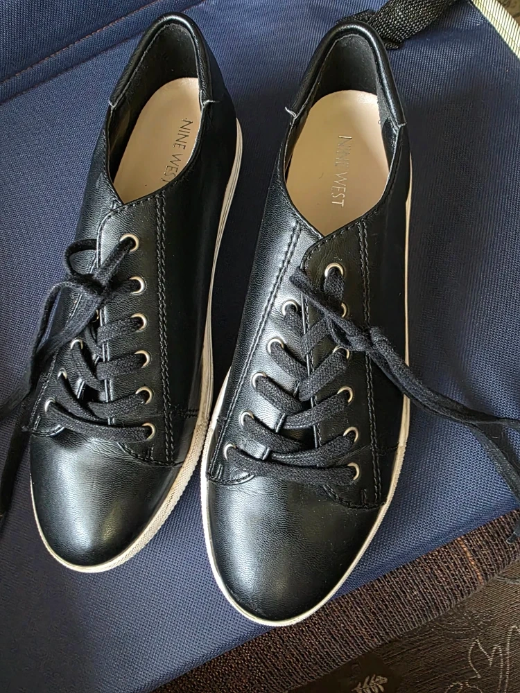 Selling a pair of Nine West black sneakers. They're in great condition and ready for a new owner! The sneakers have a classic design that can be dressed up or down. Perfect for everyday wear!