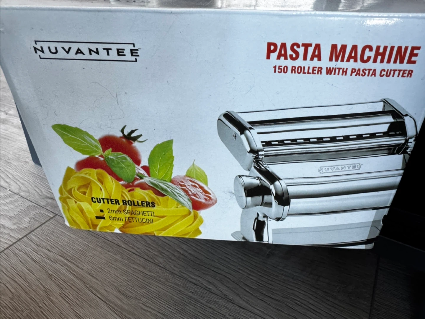 Selling a Nuvantee pasta machine in excellent condition! It's sold also with different pasta cutter, for spaghetti and tagliatelle. Comes with the box!
