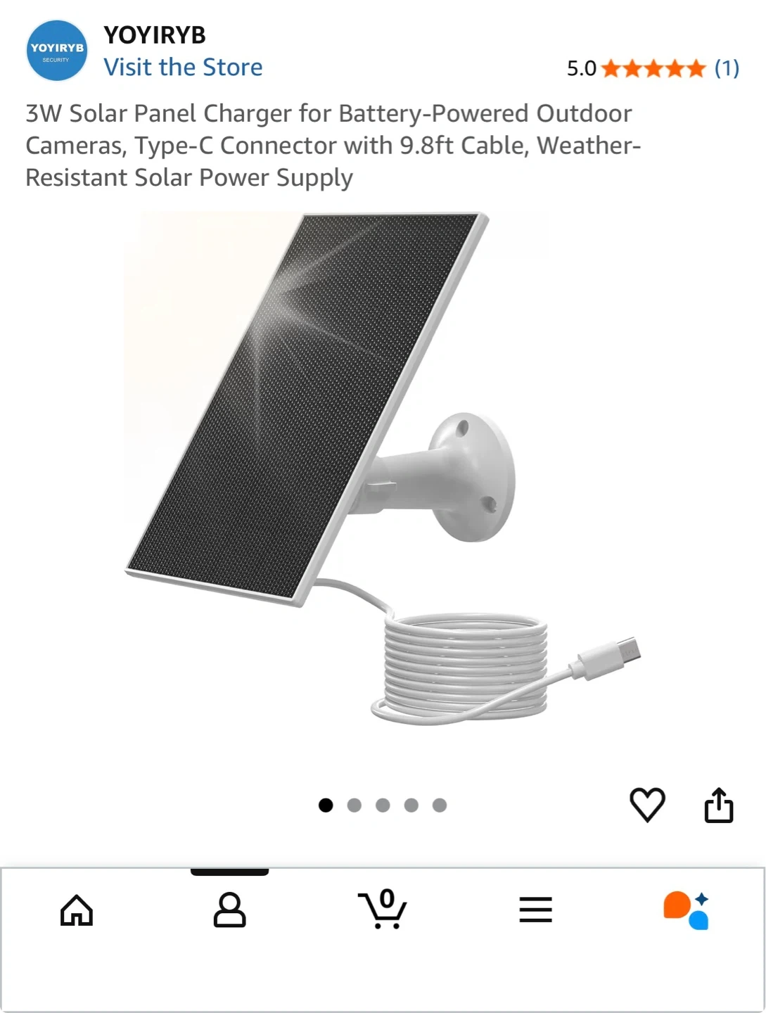3W solar panel charger for battery-powered outdoor cameras. It's compatible with Type-C connectors and includes a 9.8ft cable. Also comes with an adjustable mount, screw and anchor pack, and a user manual. Weather-resistant design for outdoor use.