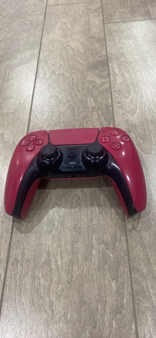Pre-owned PlayStation 5 DualSense controller. Crimson red colour. Wireless functionality. Includes all buttons and thumbsticks. It has left stick drift.