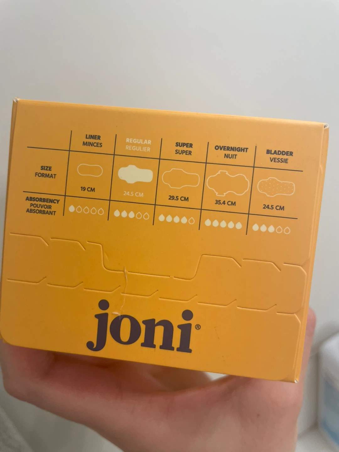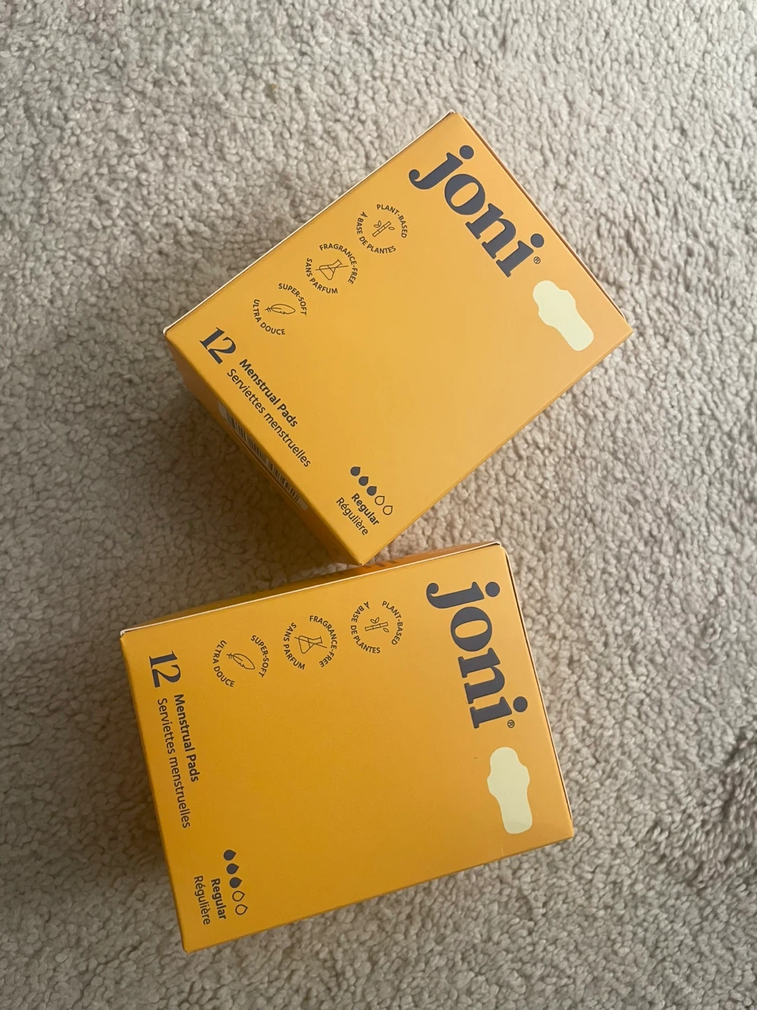 Joni plant-based menstrual pads. These regular absorbency pads are 24.5 CM in length. They are fragrance-free and ultra-thin. Get convenient period care with these pads!