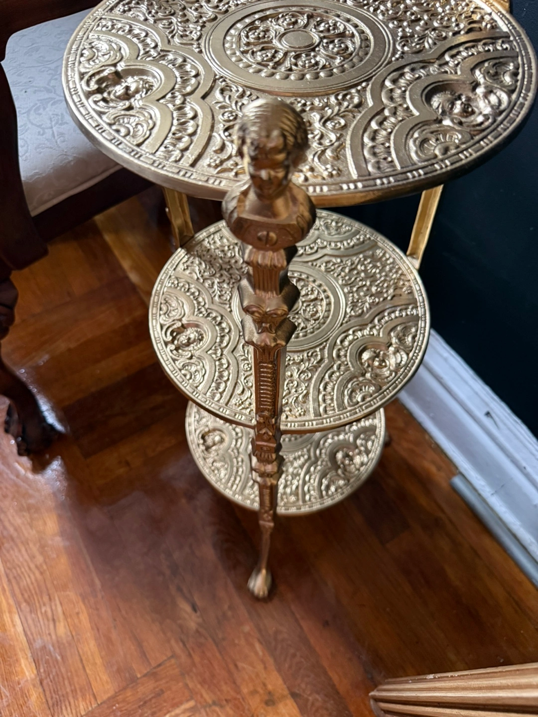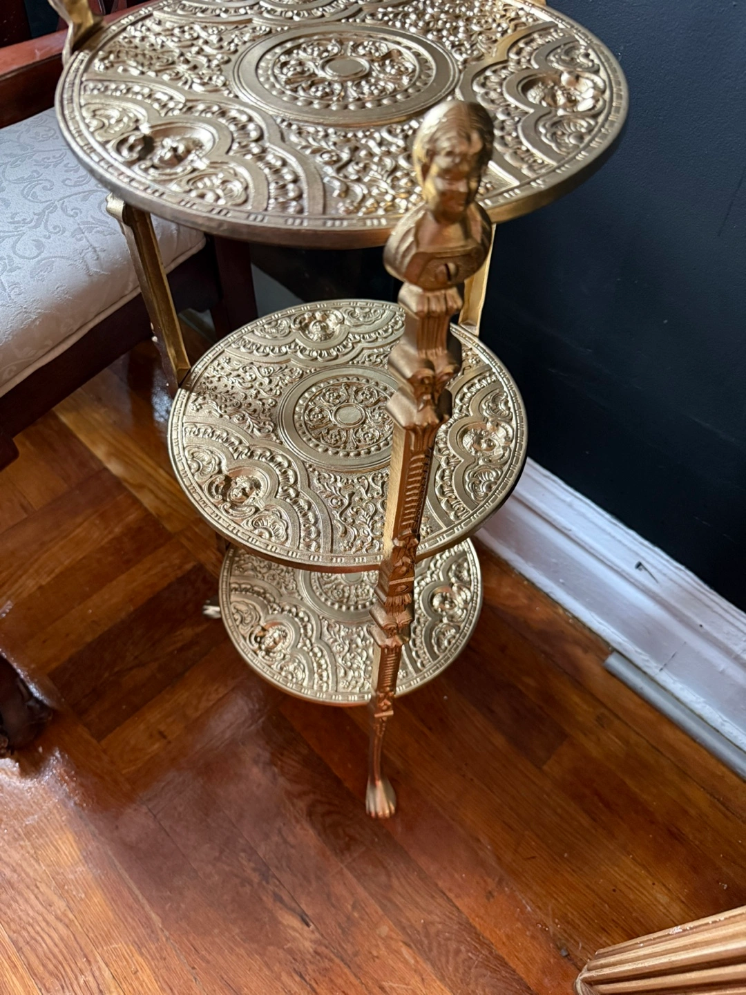 Ornate Gold Three-Tiered Plant Stand